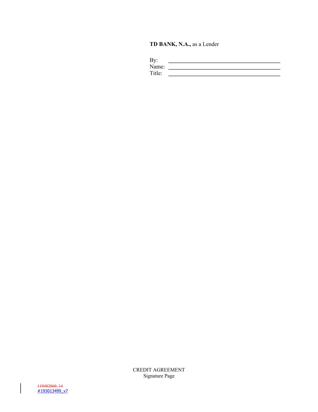 TD BANK, N.A., as a Lender By: Name: Title: CREDIT AGREEMENT Signature Page 119482860_14 #193013499_v7
