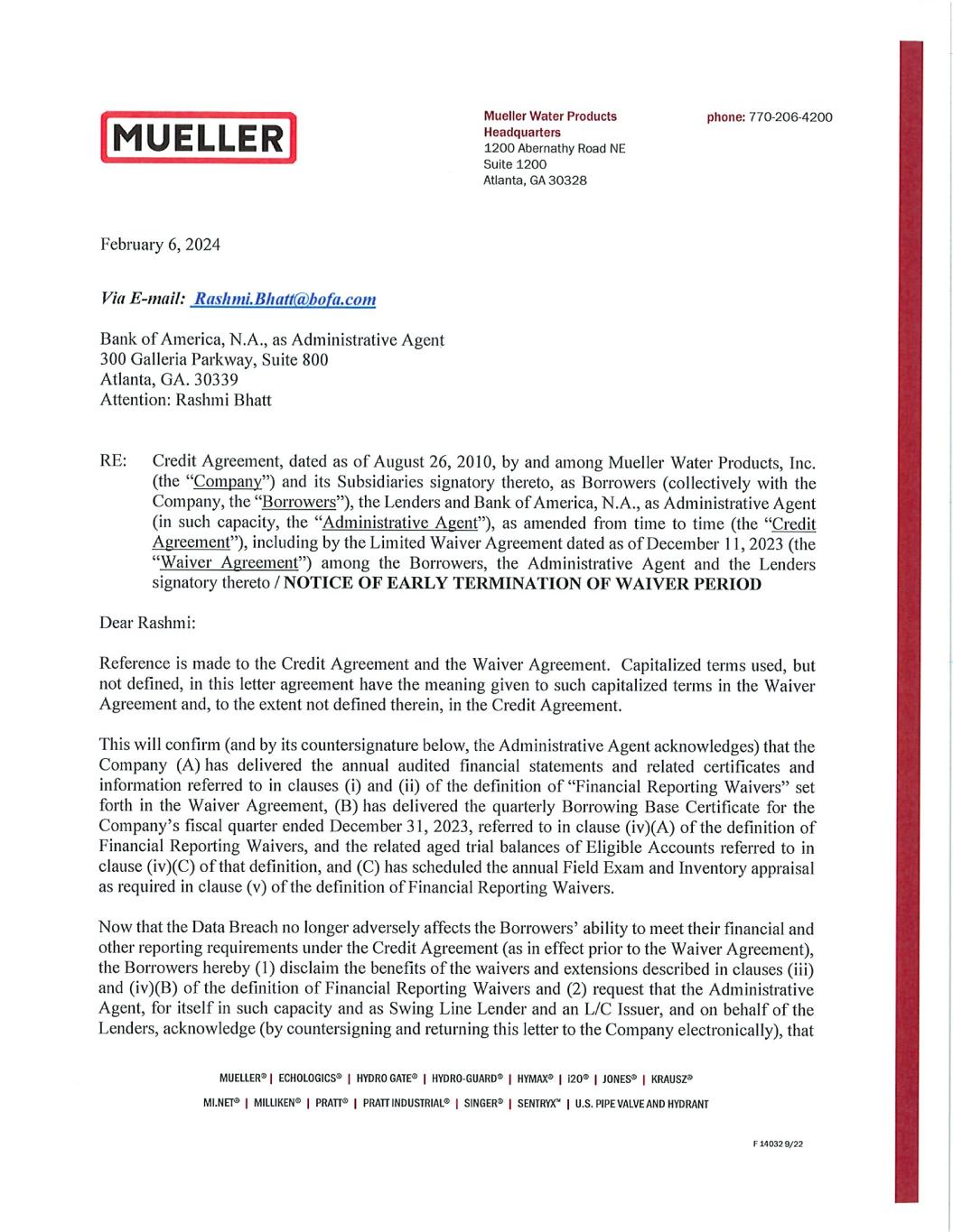 EX-10.2 2 noticeofearlytermination.htm EX-10.2 noticeofearlytermination