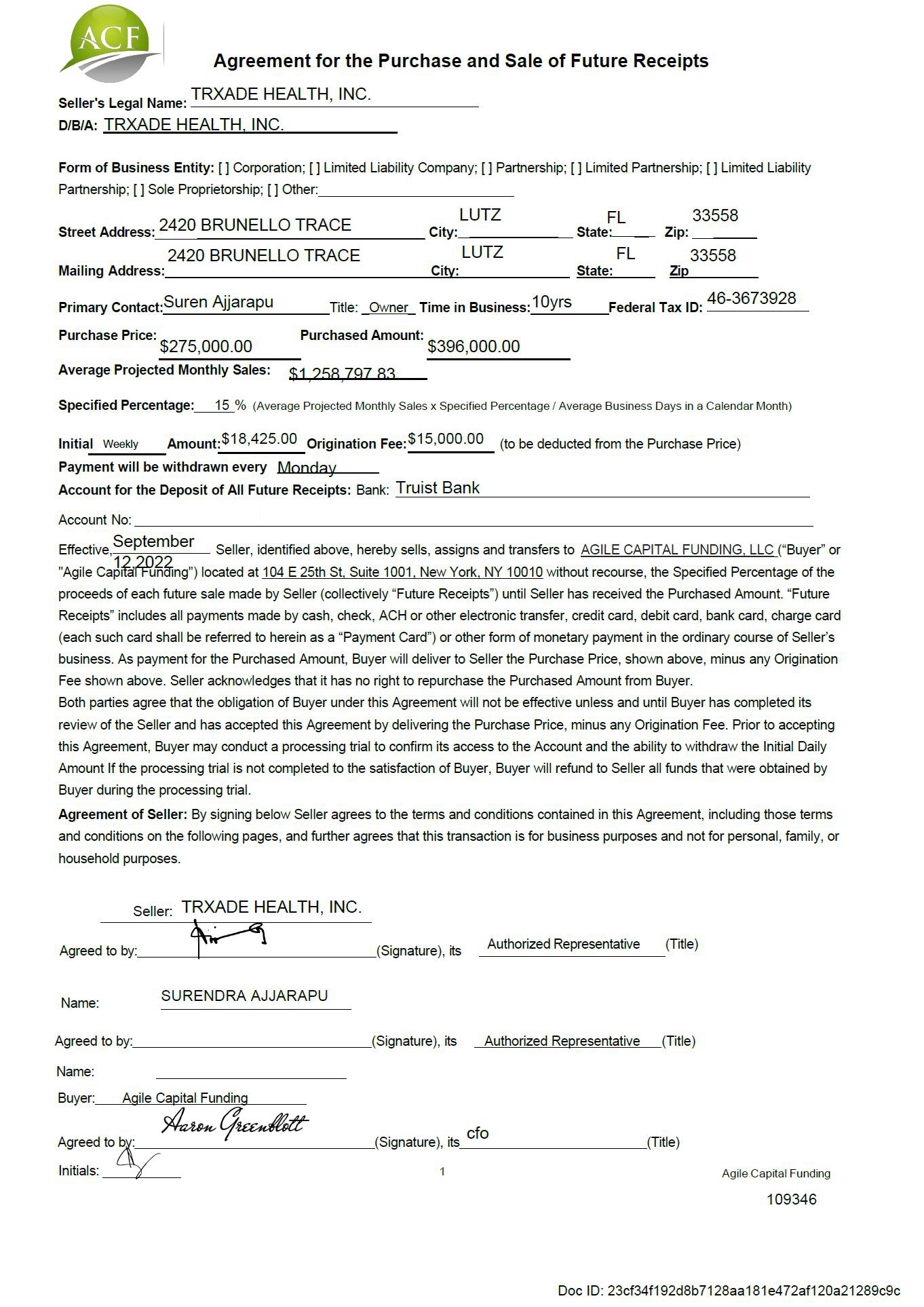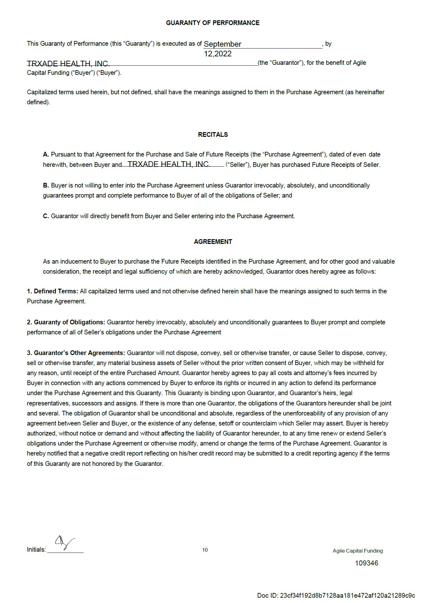 EX-10.10 2 ex10-10.htm AGREEMENT FOR THE PURCHASE AND SALE OF FUTURE RECEIPTS DATED SEPTEMBER 14, 2022