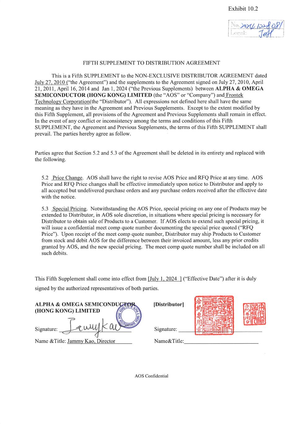 EX-10.2 3 ex102fifthsupplementfron.htm EX-10.2 ex102fifthsupplementfron