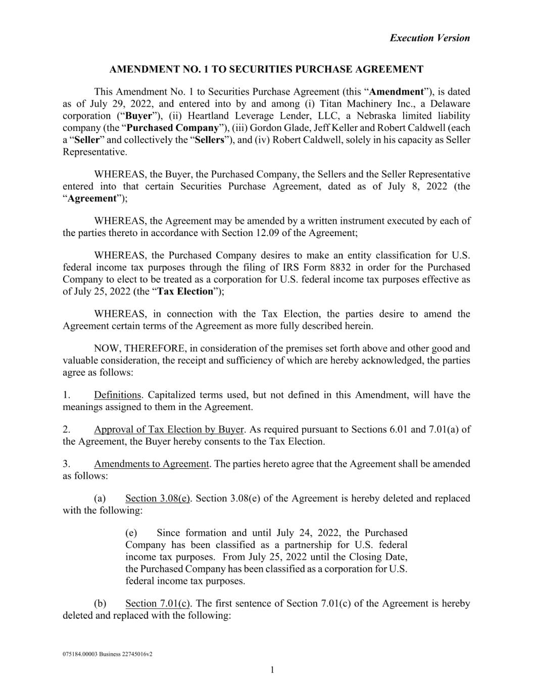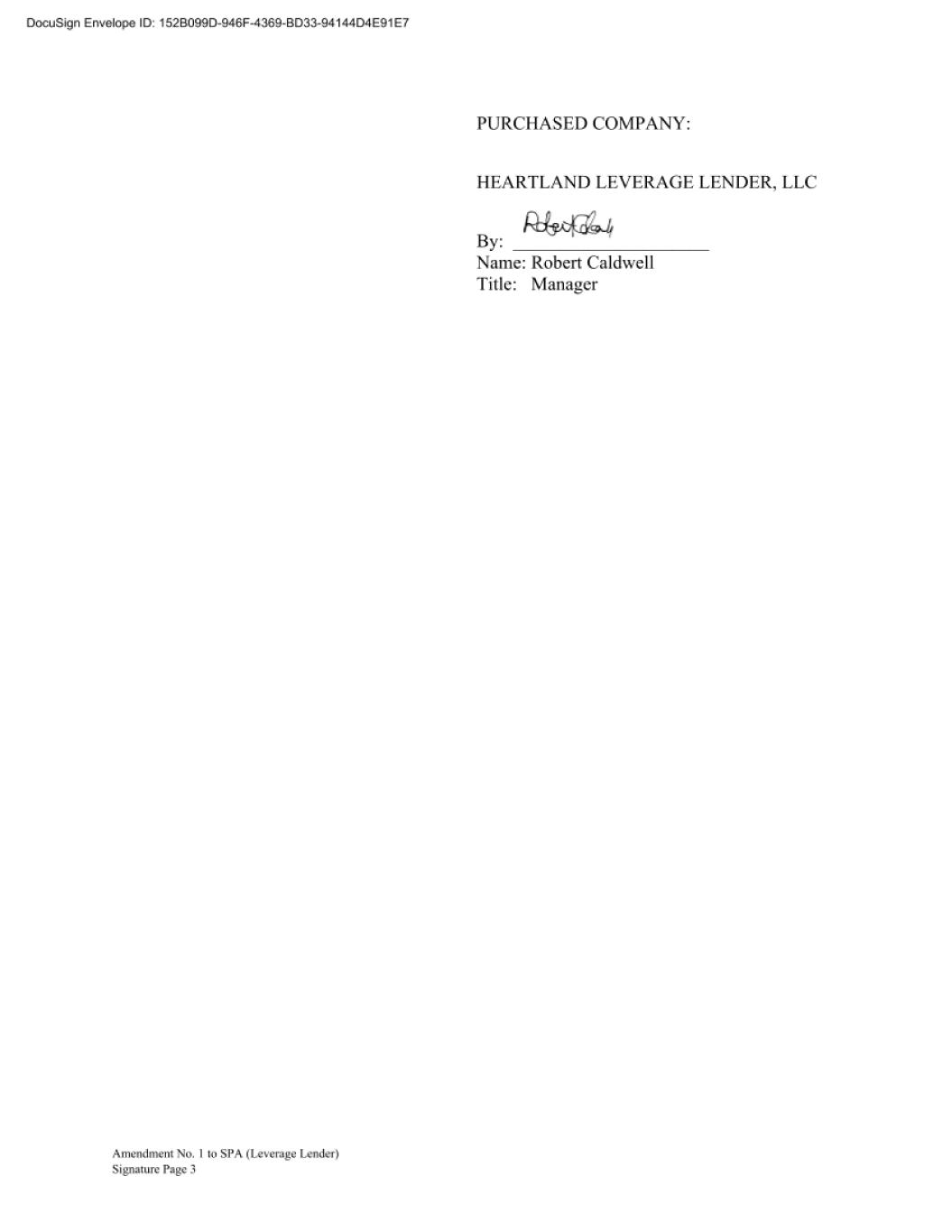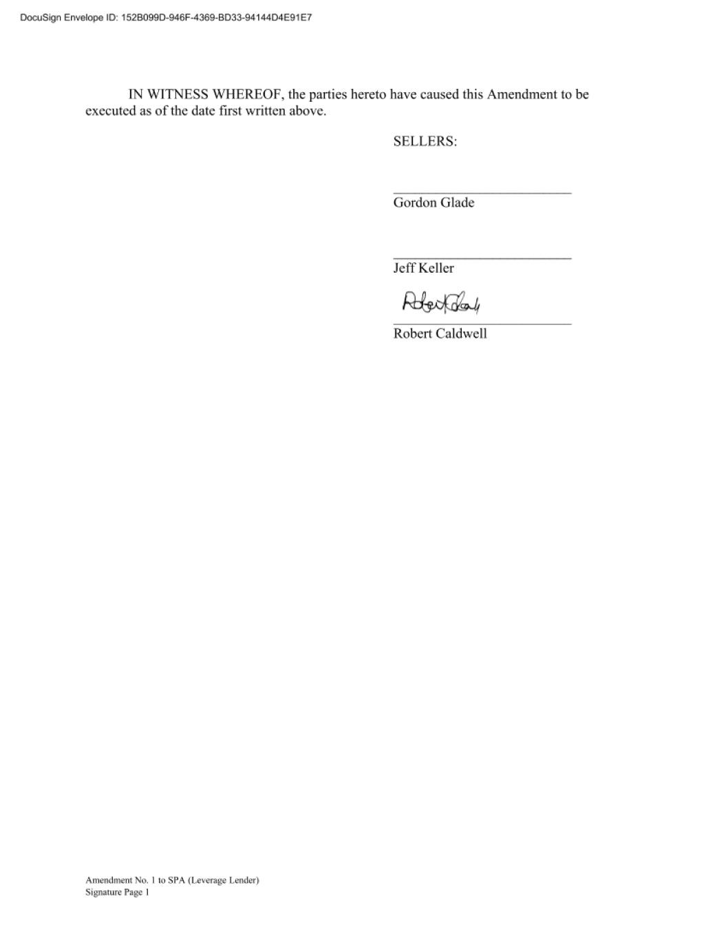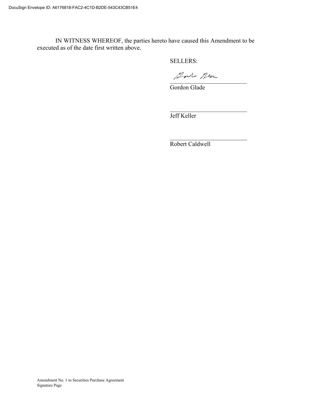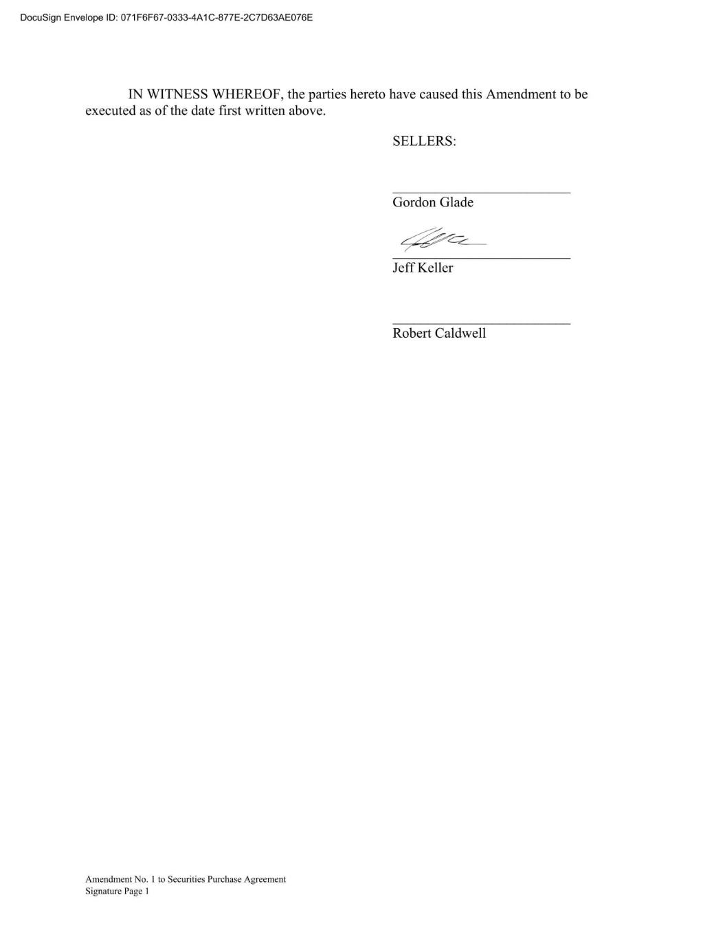 Amendment No. 1 to Securities Purchase Agreement Signature Page IN WITNESS WHEREOF, the parties hereto have caused this Amendment to be executed as of the date first written above. SELLERS: _________________________ Gordon Glade _________________________ Jeff Keller _________________________ Robert Caldwell DocuSign Envelope ID: A6176818-FAC2-4C1D-B2DE-543C43CB51E4