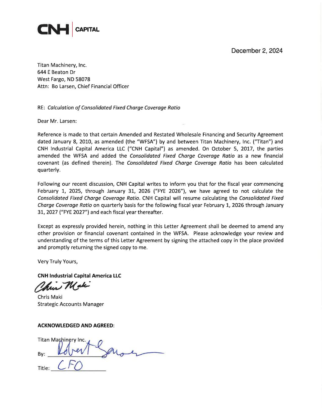 EX-10.1 2 a101cnhwaiver.htm EX-10.1 a101cnhwaiver