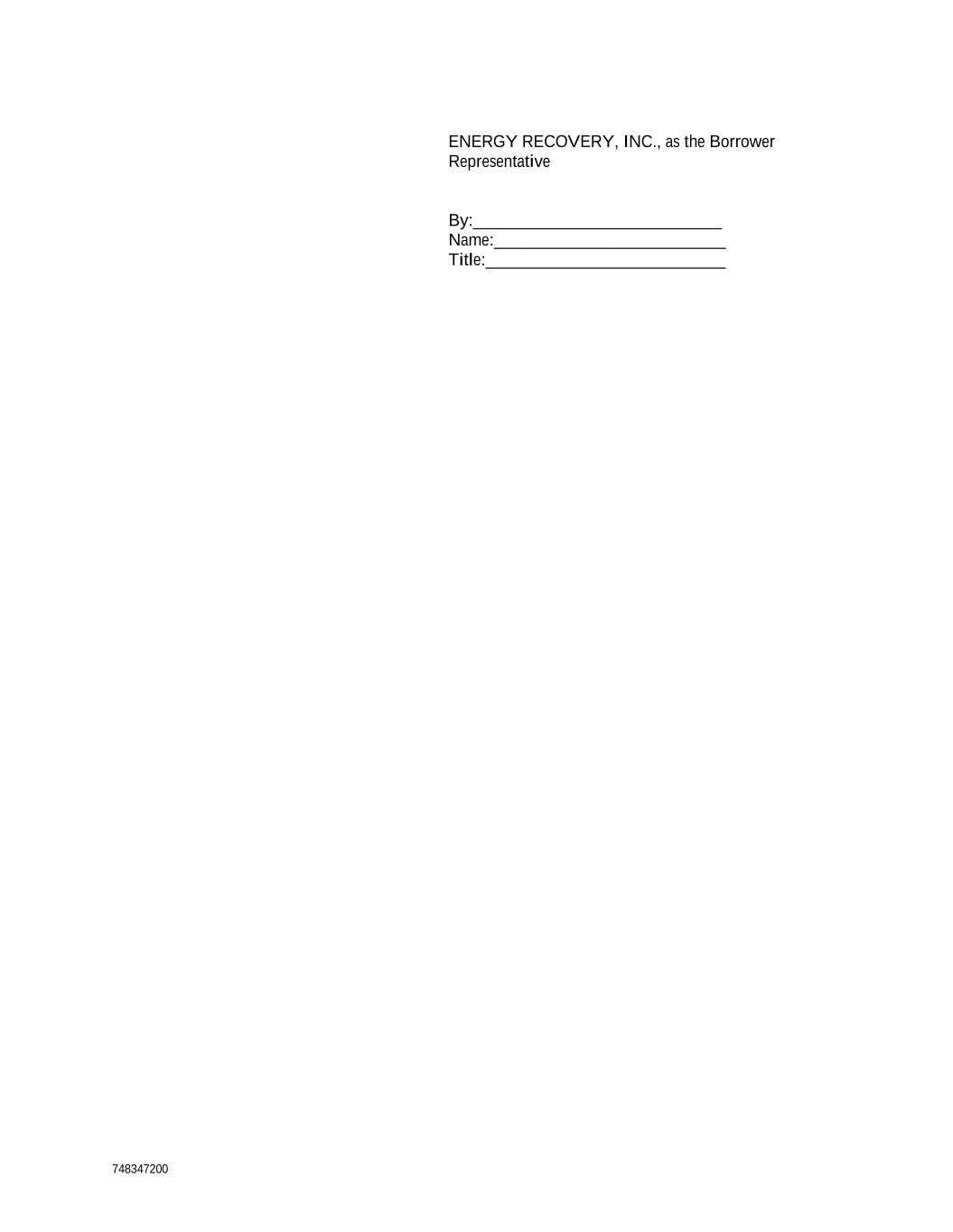 748347200 ENERGY RECOVERY, INC., as the Borrower Representative By:_____________________________ Name:___________________________ Title:____________________________