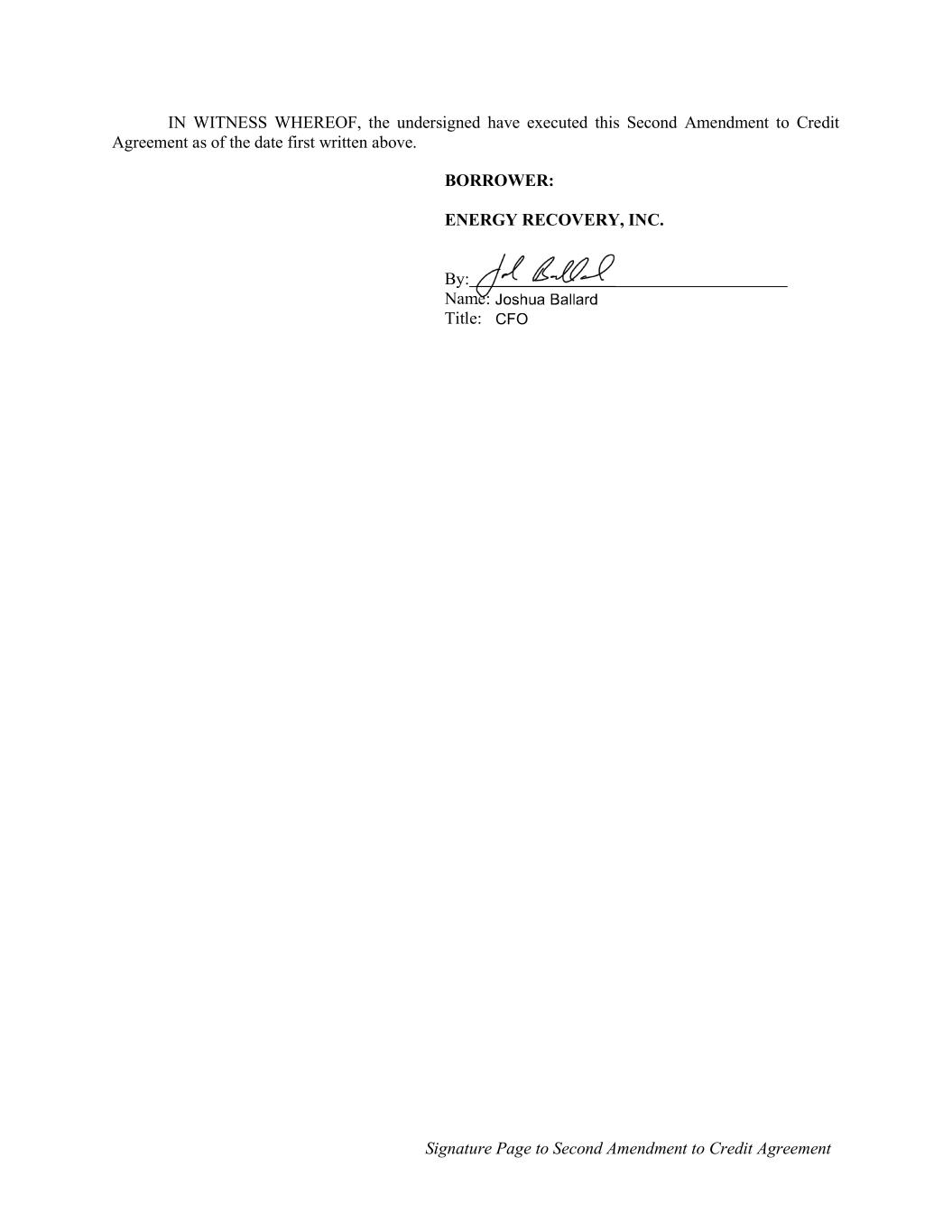 Signature Page to Second Amendment to Credit Agreement IN WITNESS WHEREOF, the undersigned have executed this Second Amendment to Credit Agreement as of the date first written above. BORROWER: ENERGY RECOVERY, INC. By: Name: Title: CFO