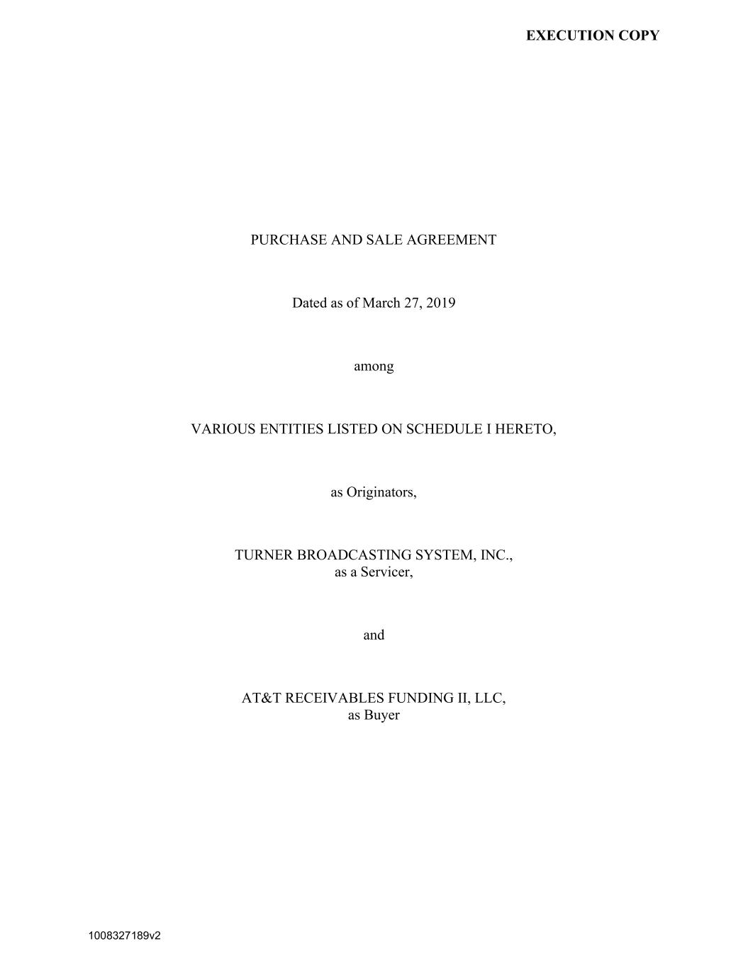 EXECUTION COPY 1008327189v2 PURCHASE AND SALE AGREEMENT Dated as of March 27, 2019 among VARIOUS ENTITIES LISTED ON SCHEDULE I HERETO, as Originators, TURNER BROADCASTING SYSTEM, INC., as a Servicer, and AT&T RECEIVABLES FUNDING II, LLC, as Buyer
