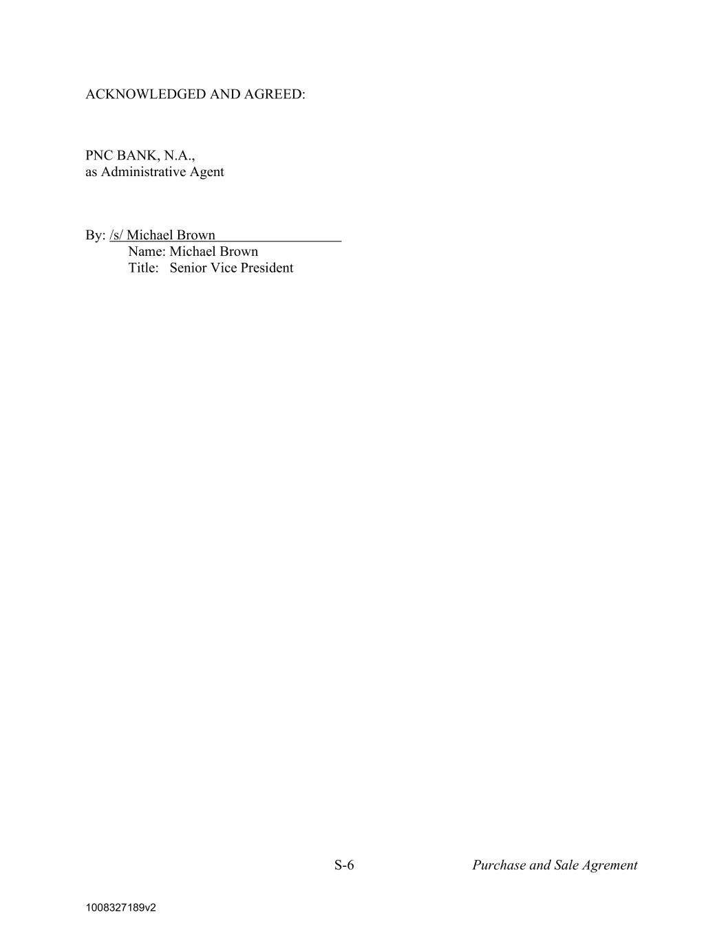 S-6 Purchase and Sale Agrement 1008327189v2 ACKNOWLEDGED AND AGREED: PNC BANK, N.A., as Administrative Agent By: /s/ Michael Brown Name: Michael Brown Title: Senior Vice President