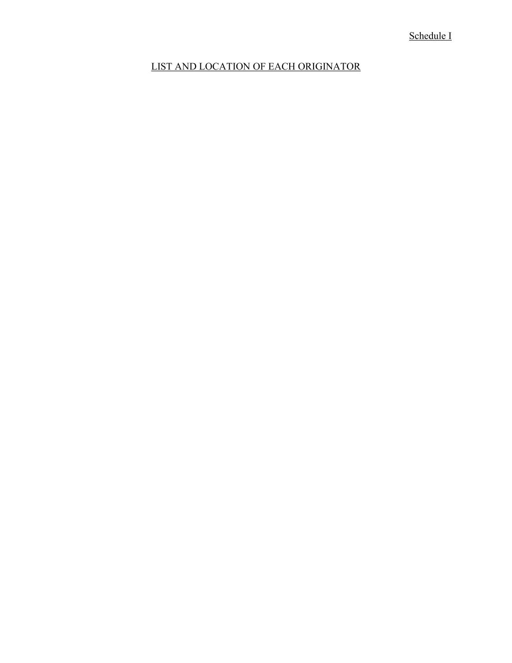 Schedule I LIST AND LOCATION OF EACH ORIGINATOR