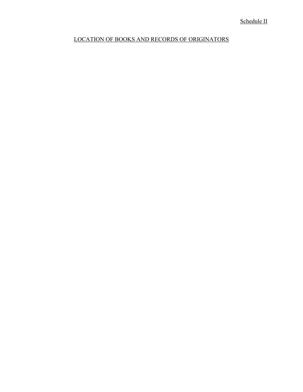 Schedule II LOCATION OF BOOKS AND RECORDS OF ORIGINATORS
