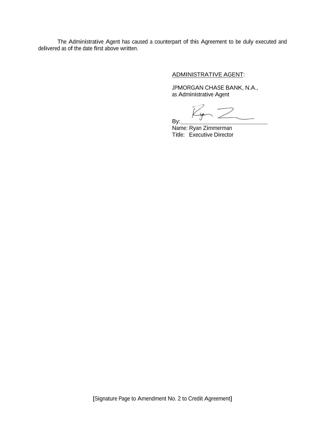 [Signature Page to Amendment No. 2 to Credit Agreement] The Administrative Agent has caused a counterpart of this Agreement to be duly executed and delivered as of the date first above written. ADMINISTRATIVE AGENT: JPMORGAN CHASE BANK, N.A., as Administrative Agent By: Name: Ryan Zimmerman Title: Executive Director