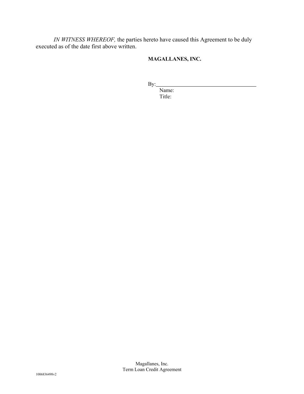 Magallanes, Inc. Term Loan Credit Agreement 1006836498v2 MAGALLANES, INC. IN WITNESS WHEREOF, the parties hereto have caused this Agreement to be duly executed as of the date first above written. By: Name: Title:
