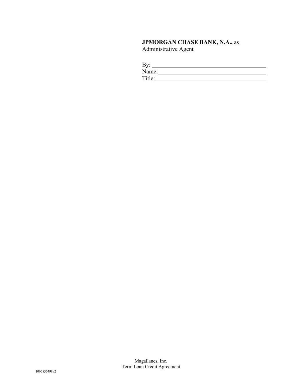 JPMORGAN CHASE BANK, N.A., as Administrative Agent By: Name: Title: Magallanes, Inc. Term Loan Credit Agreement 1006836498v2