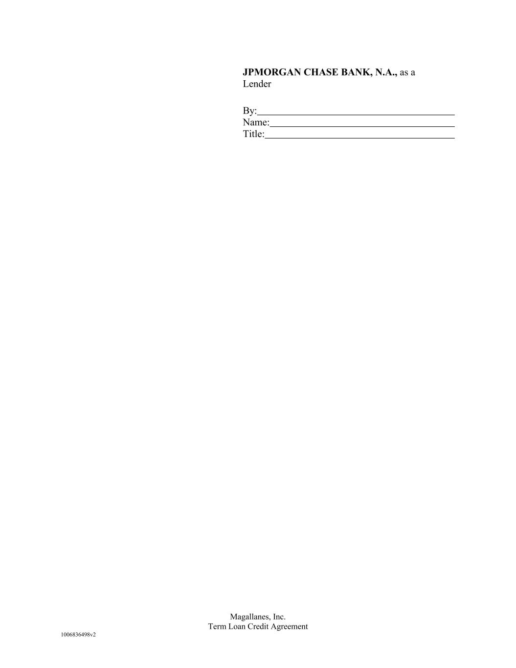 JPMORGAN CHASE BANK, N.A., as a Lender By: Name: Title: Magallanes, Inc. Term Loan Credit Agreement 1006836498v2