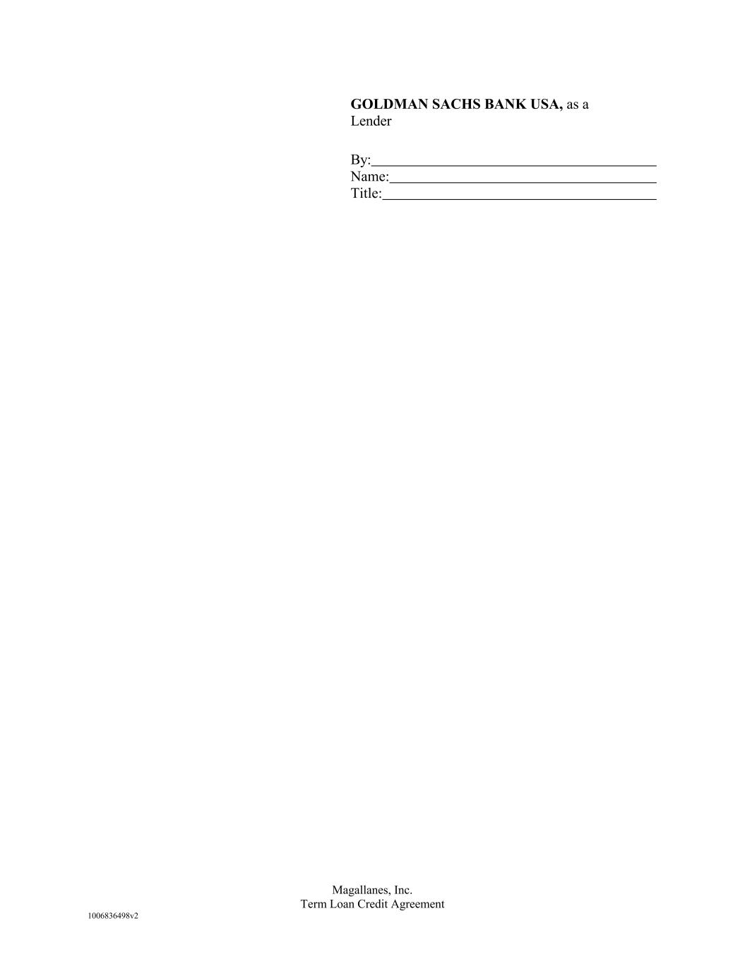 GOLDMAN SACHS BANK USA, as a Lender By: Name: Title: Magallanes, Inc. Term Loan Credit Agreement 1006836498v2