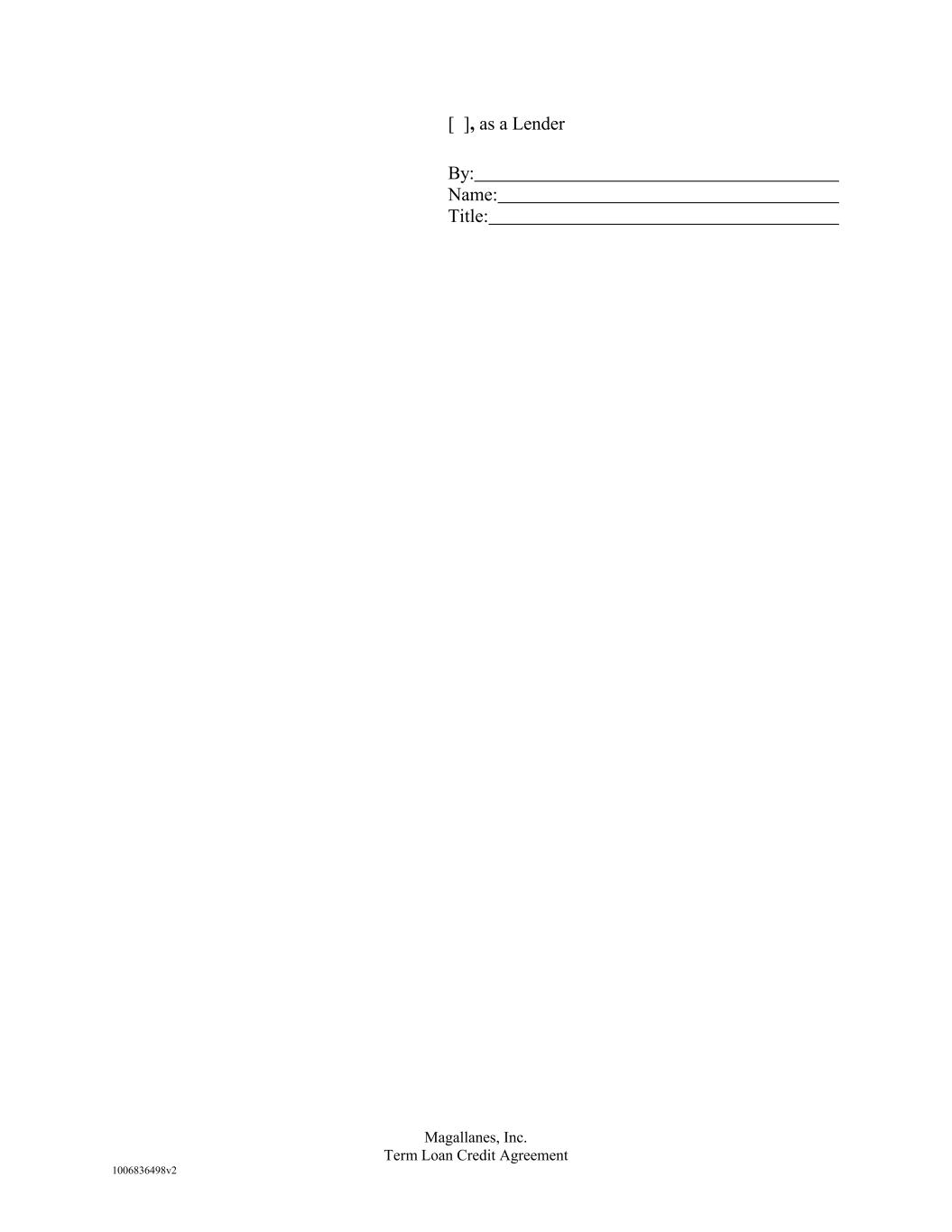 [ ], as a Lender By: Name: Title: Magallanes, Inc. Term Loan Credit Agreement 1006836498v2