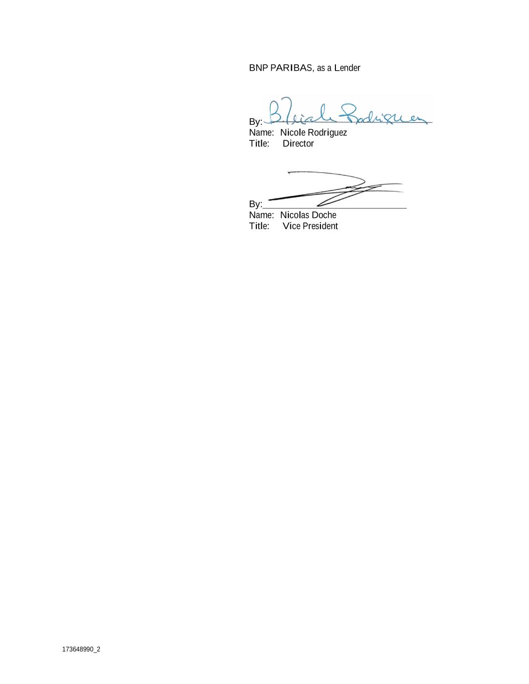 173648990_2 BNP PARIBAS, as a Lender By: Name: Nicole Rodriguez Title: Director By: Name: Nicolas Doche Title: Vice President