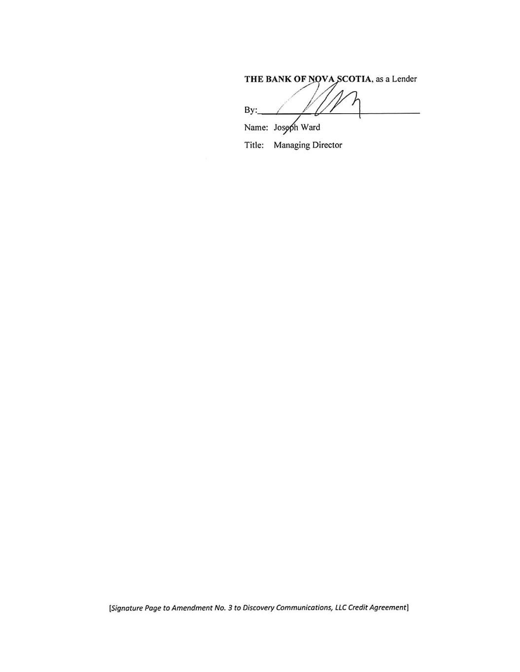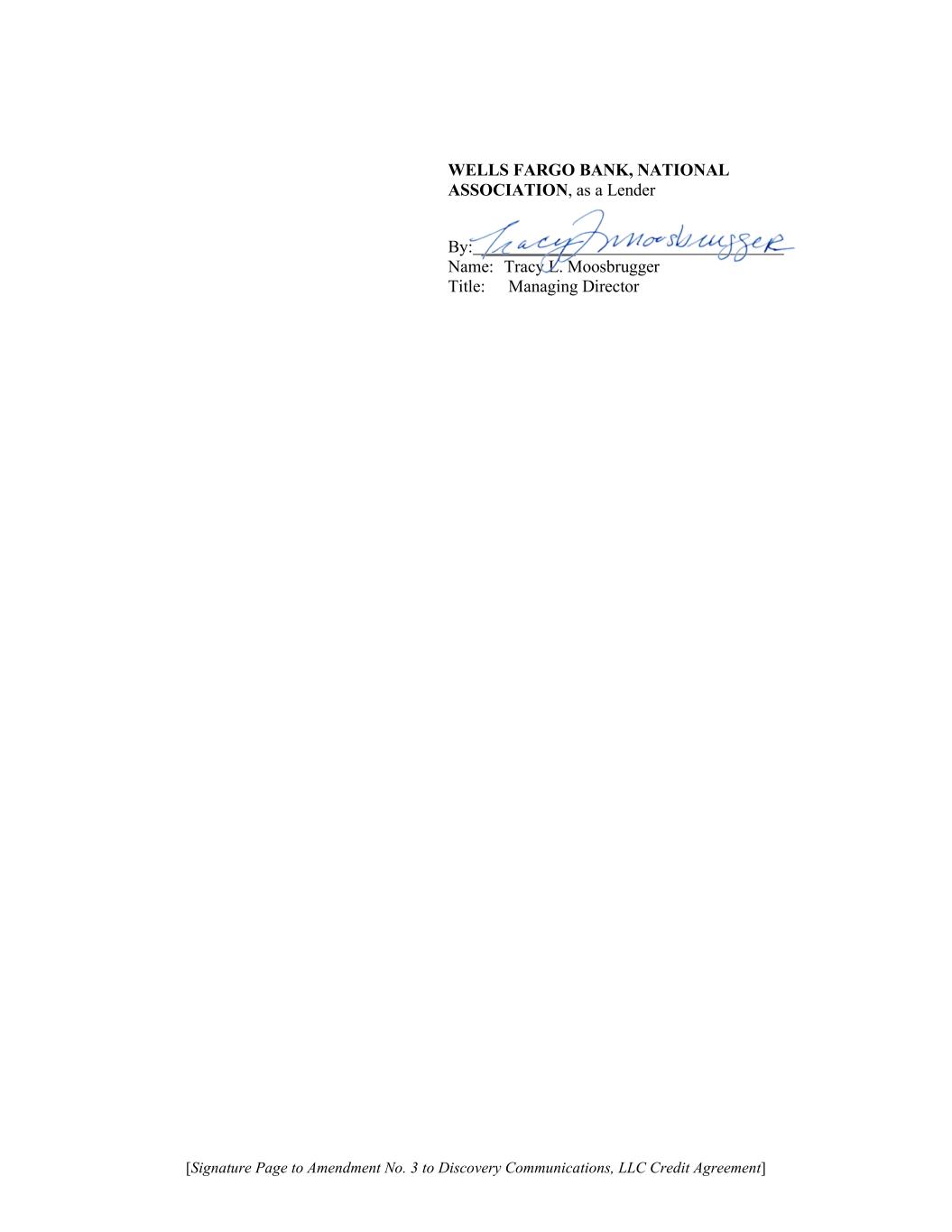 [Signature Page to Amendment No. 3 to Discovery Communications, LLC Credit Agreement] WELLS FARGO BANK, NATIONAL ASSOCIATION, as a Lender By: ___________ Name: Tracy L. Moosbrugger Title: Managing Director