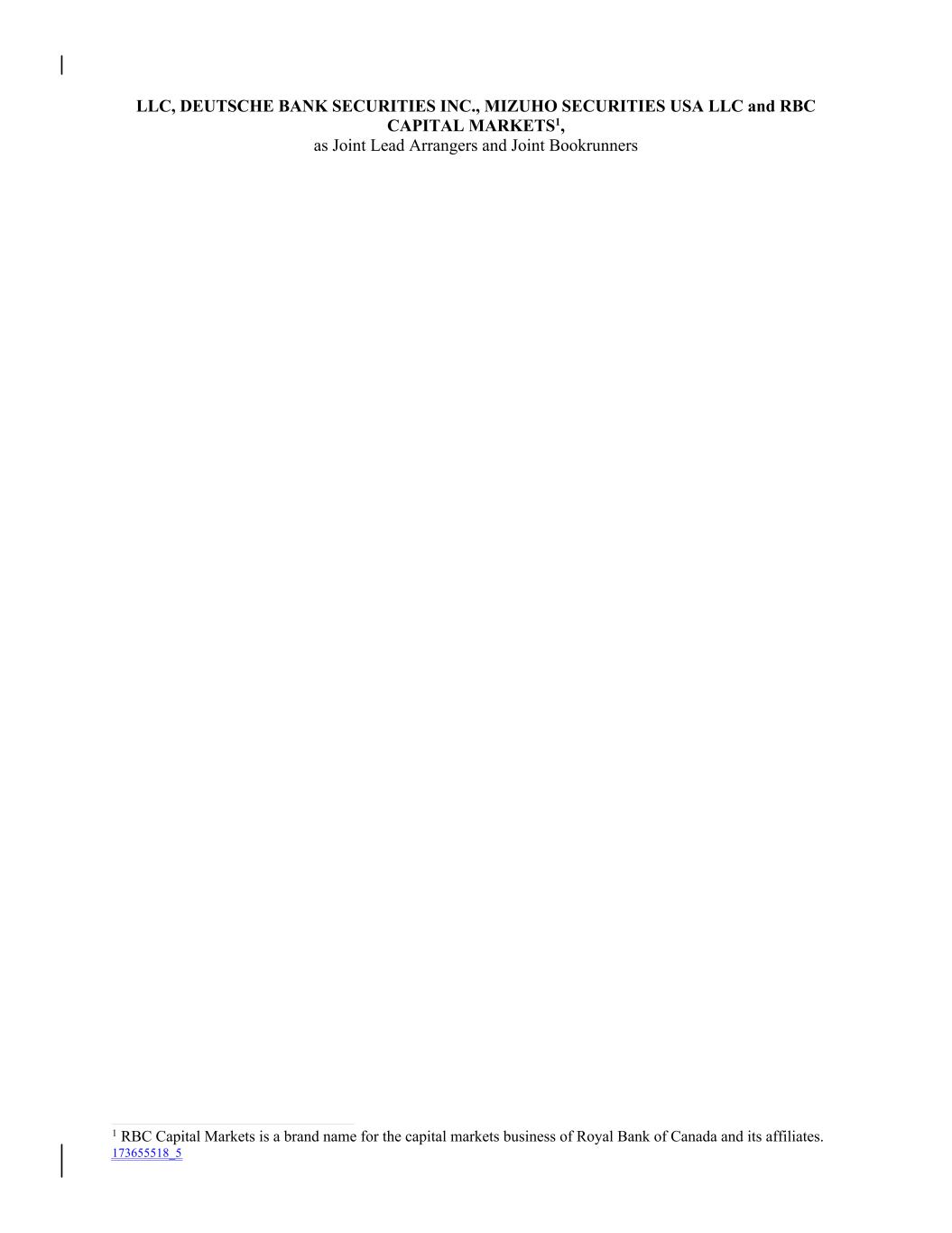 LLC, DEUTSCHE BANK SECURITIES INC., MIZUHO SECURITIES USA LLC and RBC CAPITAL MARKETS1, as Joint Lead Arrangers and Joint Bookrunners 1 RBC Capital Markets is a brand name for the capital markets business of Royal Bank of Canada and its affiliates. 173655518_5