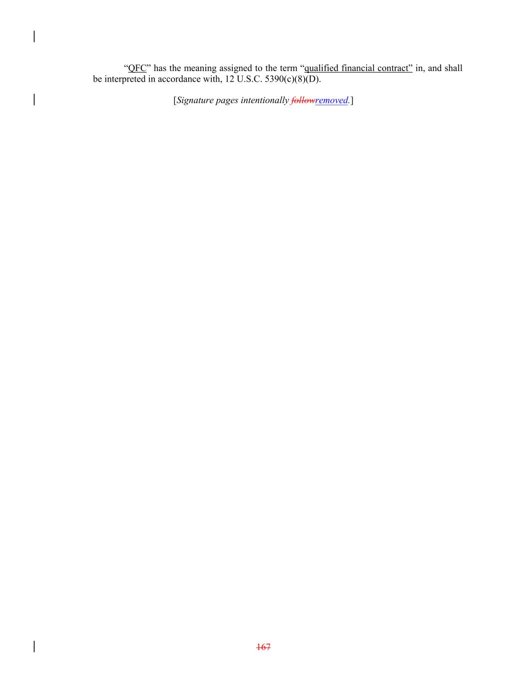 “QFC” has the meaning assigned to the term “qualified financial contract” in, and shall be interpreted in accordance with, 12 U.S.C. 5390(c)(8)(D). [Signature pages intentionally followremoved.] 167