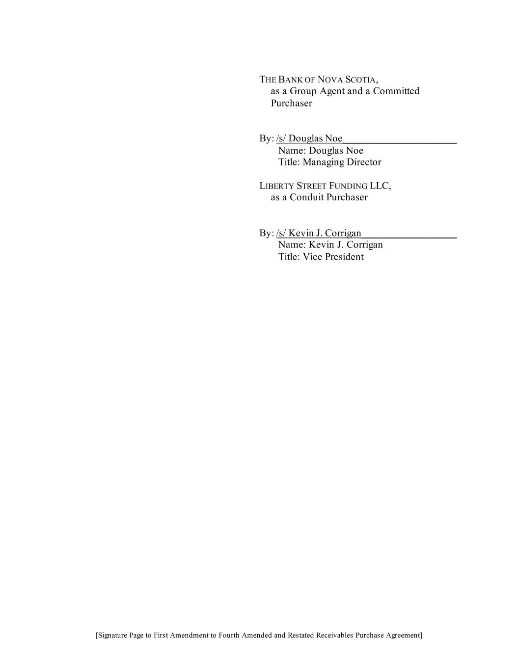 [Signature Page to First Amendment to Fourth Amended and Restated Receivables Purchase Agreement] THE BANK OF NOVA SCOTIA, as a Group Agent and a Committed Purchaser By: /s/ Douglas Noe______________________ Name: Douglas Noe Title: Managing Director LIBERTY STREET FUNDING LLC, as a Conduit Purchaser By: /s/ Kevin J. Corrigan__________________ Name: Kevin J. Corrigan Title: Vice President