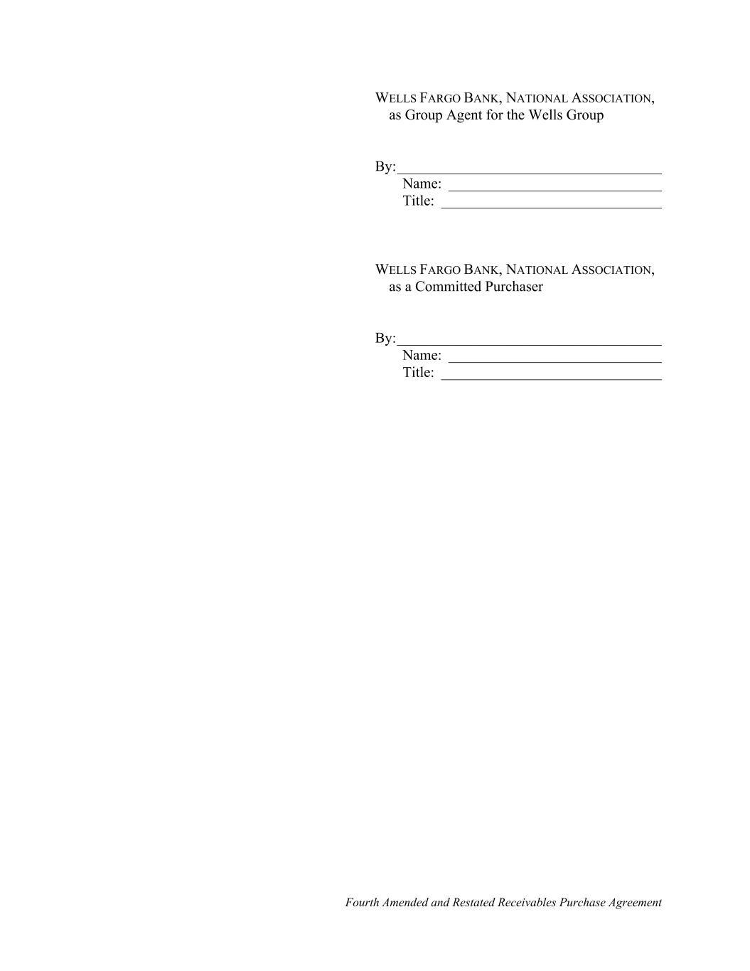 Fourth Amended and Restated Receivables Purchase Agreement WELLS FARGO BANK, NATIONAL ASSOCIATION, as Group Agent for the Wells Group By:____________________________________ Name: _____________________________ Title: ______________________________ WELLS FARGO BANK, NATIONAL ASSOCIATION, as a Committed Purchaser By:____________________________________ Name: _____________________________ Title: ______________________________