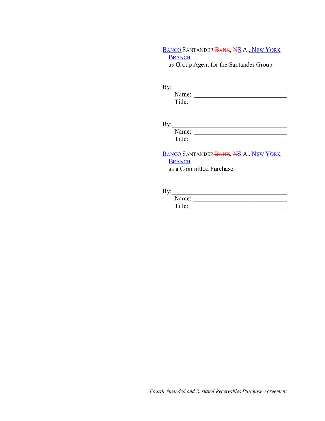 Fourth Amended and Restated Receivables Purchase Agreement BANCO SANTANDER BANK, NS.A., NEW YORK BRANCH as Group Agent for the Santander Group By:____________________________________ Name: _____________________________ Title: ______________________________ By:____________________________________ Name: _____________________________ Title: ______________________________ BANCO SANTANDER BANK, NS.A., NEW YORK BRANCH as a Committed Purchaser By:____________________________________ Name: _____________________________ Title: ______________________________