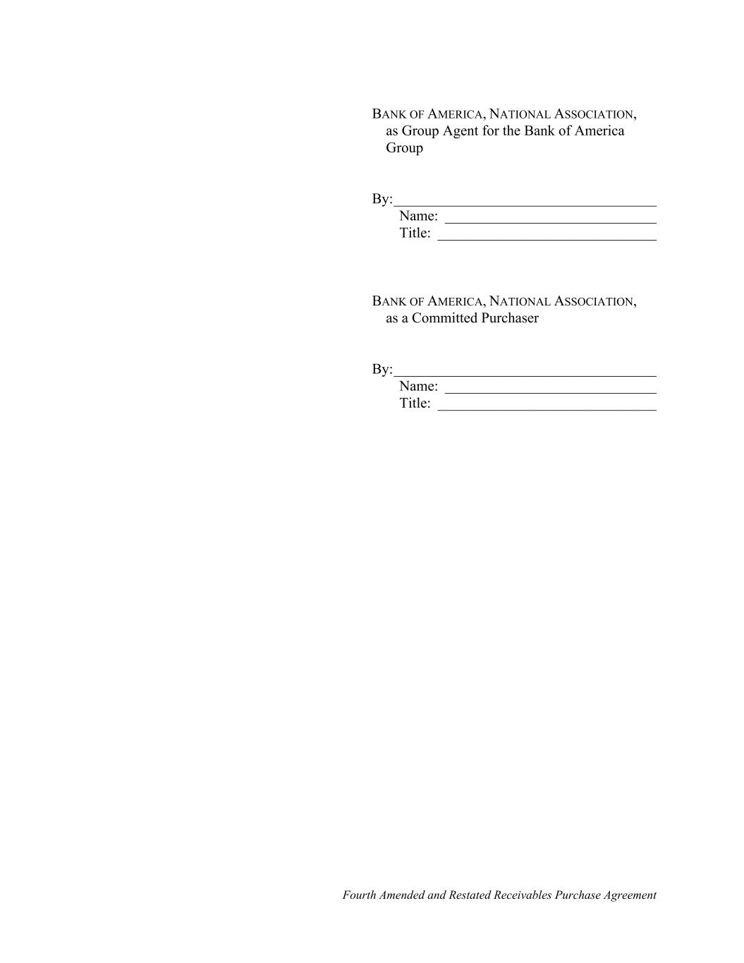 Fourth Amended and Restated Receivables Purchase Agreement BANK OF AMERICA, NATIONAL ASSOCIATION, as Group Agent for the Bank of America Group By:____________________________________ Name: _____________________________ Title: ______________________________ BANK OF AMERICA, NATIONAL ASSOCIATION, as a Committed Purchaser By:____________________________________ Name: _____________________________ Title: ______________________________