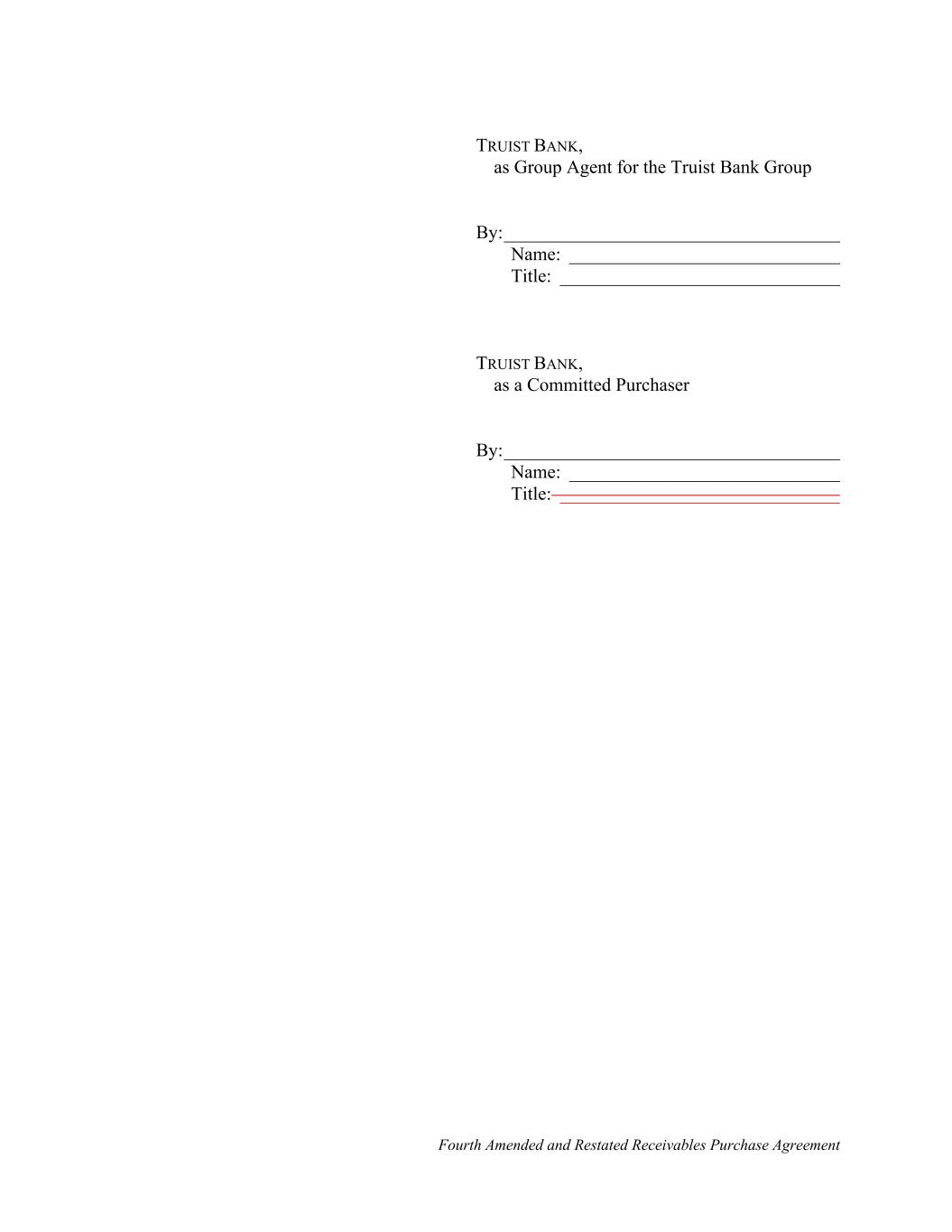 Fourth Amended and Restated Receivables Purchase Agreement TRUIST BANK, as Group Agent for the Truist Bank Group By:____________________________________ Name: _____________________________ Title: ______________________________ TRUIST BANK, as a Committed Purchaser By:____________________________________ Name: _____________________________ Title: ______________________________
