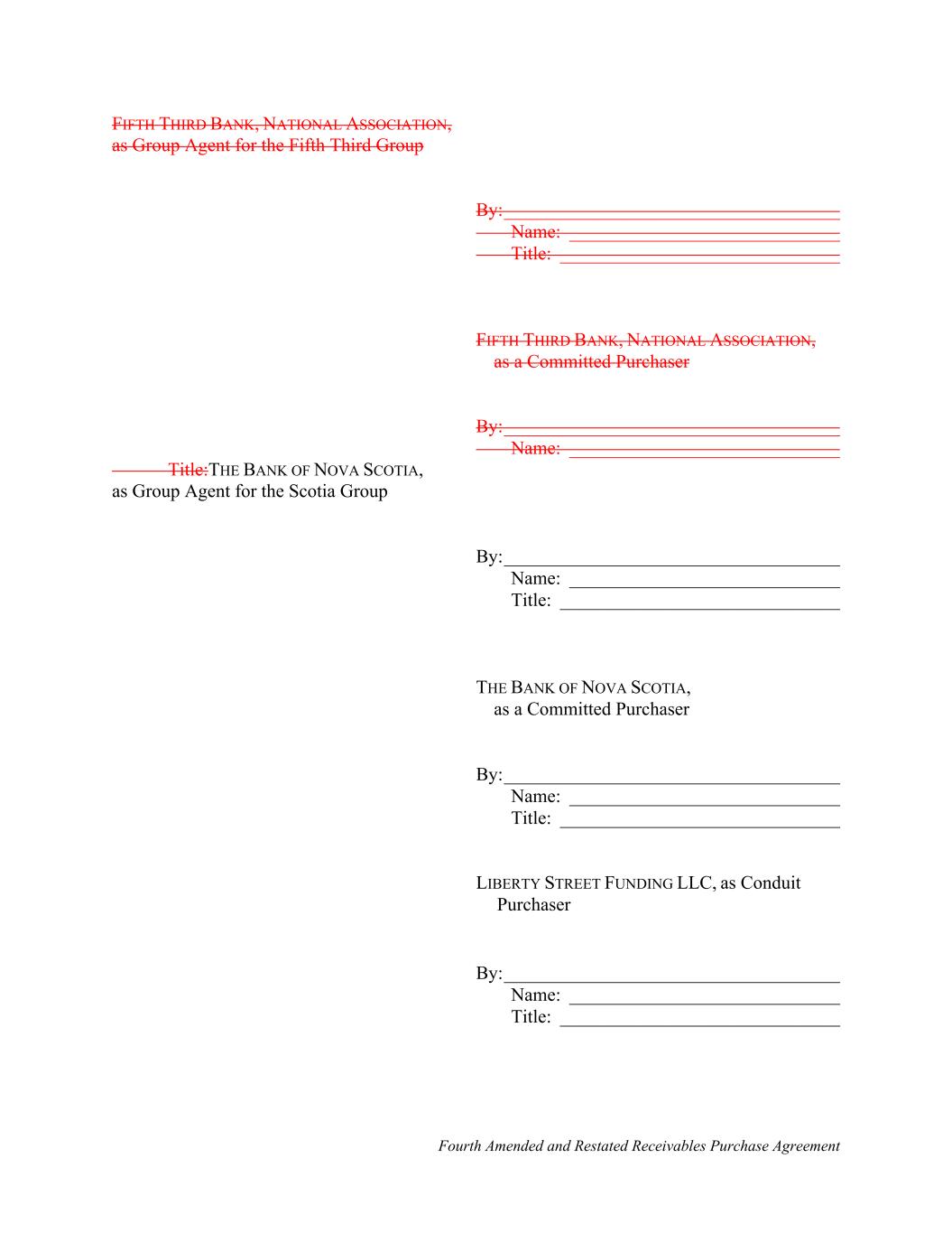 Fourth Amended and Restated Receivables Purchase Agreement FIFTH THIRD BANK, NATIONAL ASSOCIATION, as Group Agent for the Fifth Third Group By:____________________________________ Name: _____________________________ Title: ______________________________ FIFTH THIRD BANK, NATIONAL ASSOCIATION, as a Committed Purchaser By:____________________________________ Name: _____________________________ Title:THE BANK OF NOVA SCOTIA, as Group Agent for the Scotia Group By:____________________________________ Name: _____________________________ Title: ______________________________ THE BANK OF NOVA SCOTIA, as a Committed Purchaser By:____________________________________ Name: _____________________________ Title: ______________________________ LIBERTY STREET FUNDING LLC, as Conduit Purchaser By:____________________________________ Name: _____________________________ Title: ______________________________