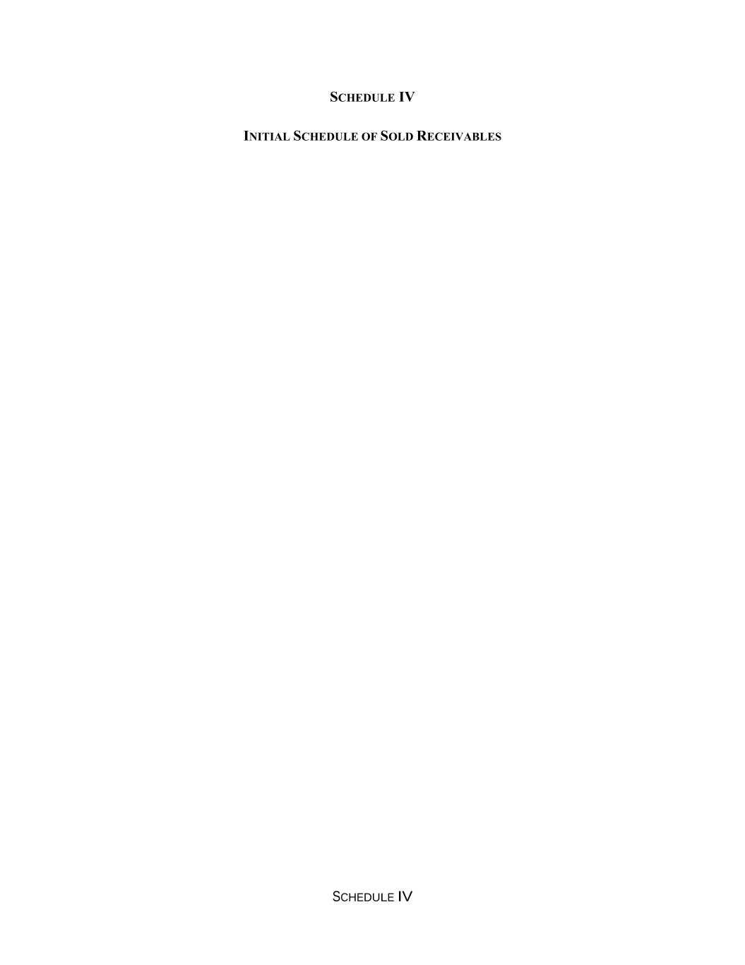 SCHEDULE IV SCHEDULE IV INITIAL SCHEDULE OF SOLD RECEIVABLES