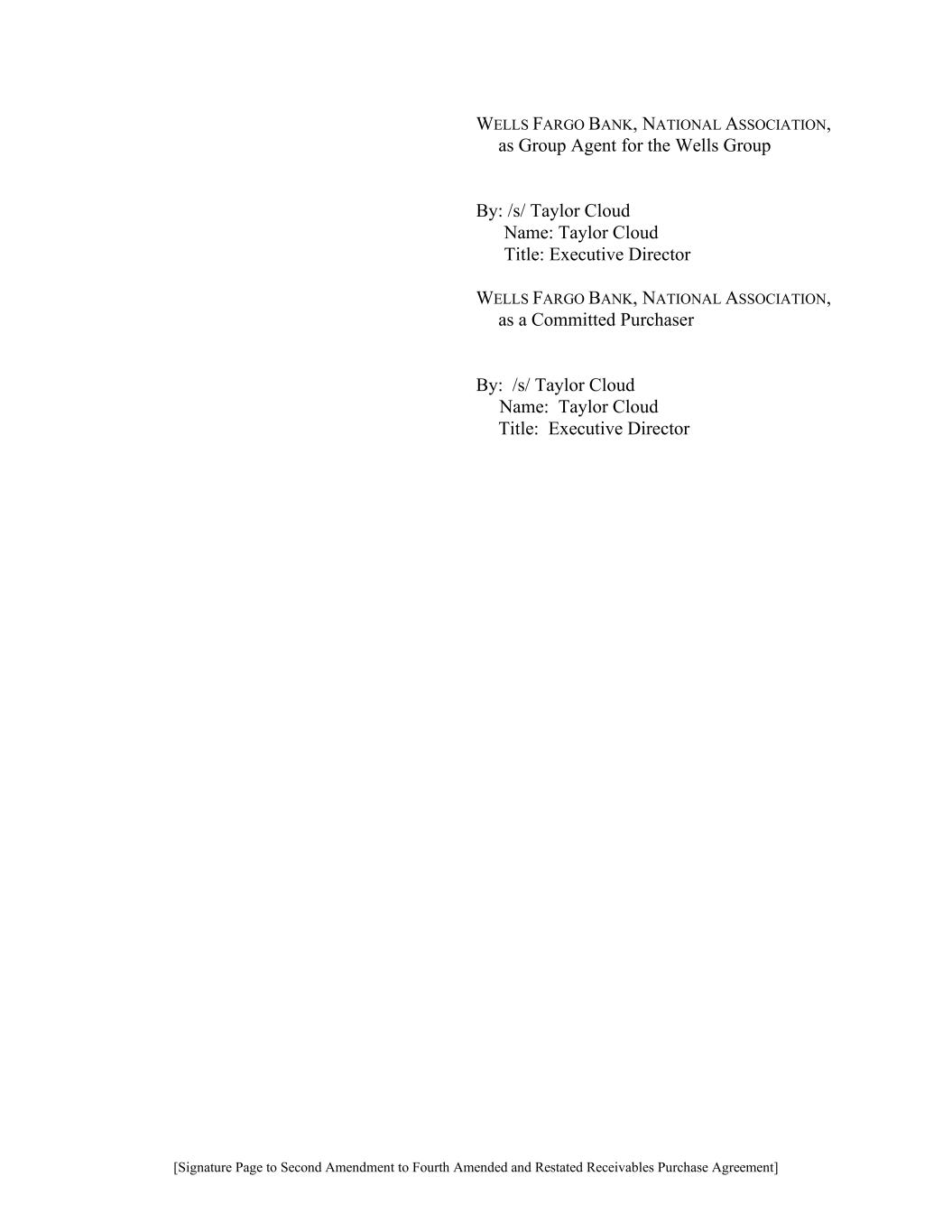 [Signature Page to Second Amendment to Fourth Amended and Restated Receivables Purchase Agreement] WELLS FARGO BANK, NATIONAL ASSOCIATION, as Group Agent for the Wells Group By: /s/ Taylor Cloud Name: Taylor Cloud Title: Executive Director WELLS FARGO BANK, NATIONAL ASSOCIATION, as a Committed Purchaser By: /s/ Taylor Cloud Name: Taylor Cloud Title: Executive Director