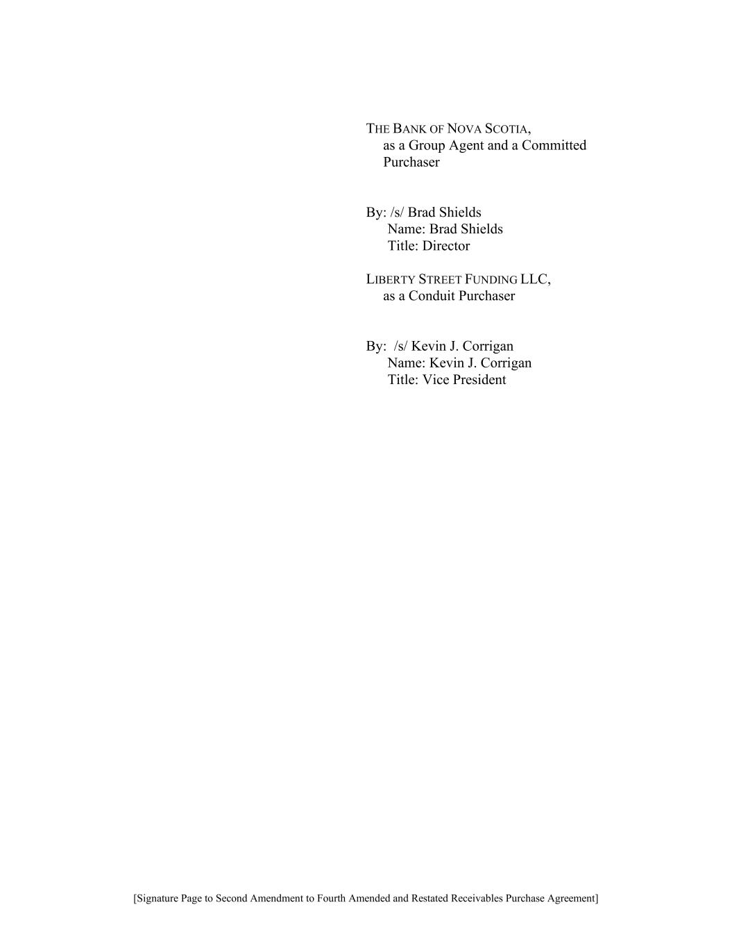 [Signature Page to Second Amendment to Fourth Amended and Restated Receivables Purchase Agreement] THE BANK OF NOVA SCOTIA, as a Group Agent and a Committed Purchaser By: /s/ Brad Shields Name: Brad Shields Title: Director LIBERTY STREET FUNDING LLC, as a Conduit Purchaser By: /s/ Kevin J. Corrigan Name: Kevin J. Corrigan Title: Vice President