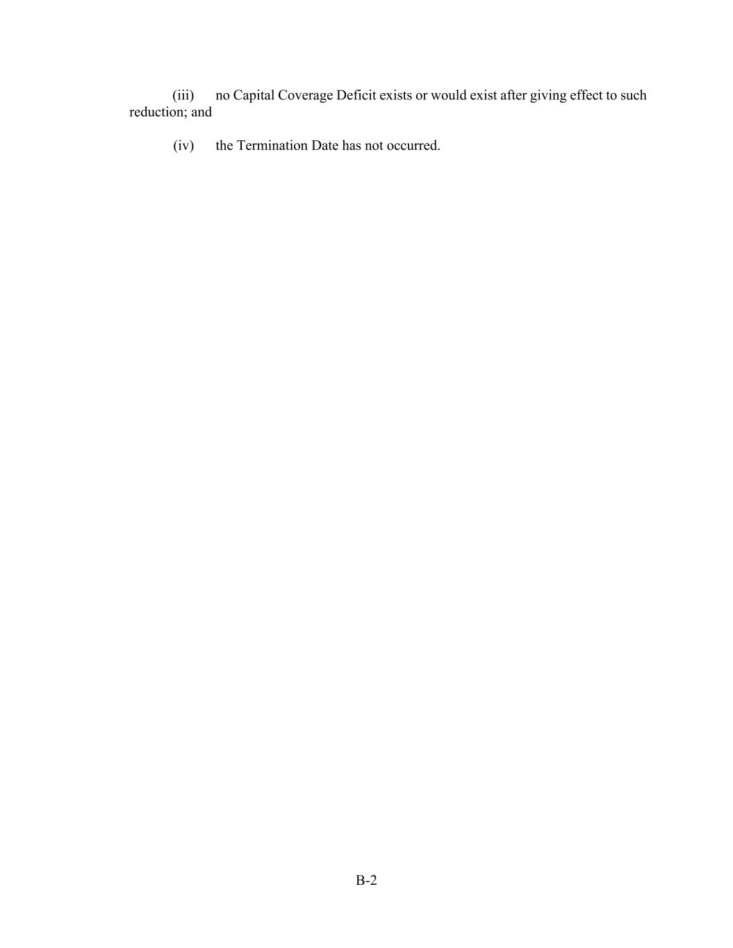 B-2 (iii) no Capital Coverage Deficit exists or would exist after giving effect to such reduction; and (iv) the Termination Date has not occurred.
