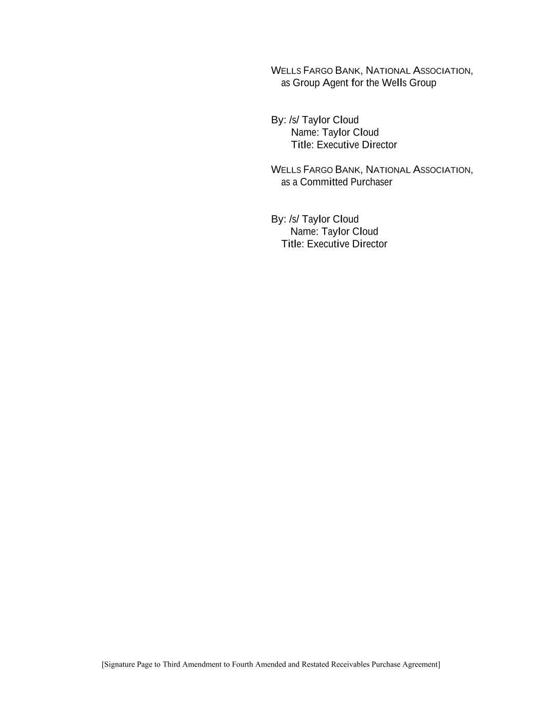 [Signature Page to Third Amendment to Fourth Amended and Restated Receivables Purchase Agreement] WELLS FARGO BANK, NATIONAL ASSOCIATION, as Group Agent for the Wells Group By: /s/ Taylor Cloud Name: Taylor Cloud Title: Executive Director WELLS FARGO BANK, NATIONAL ASSOCIATION, as a Committed Purchaser By: /s/ Taylor Cloud Name: Taylor Cloud Title: Executive Director