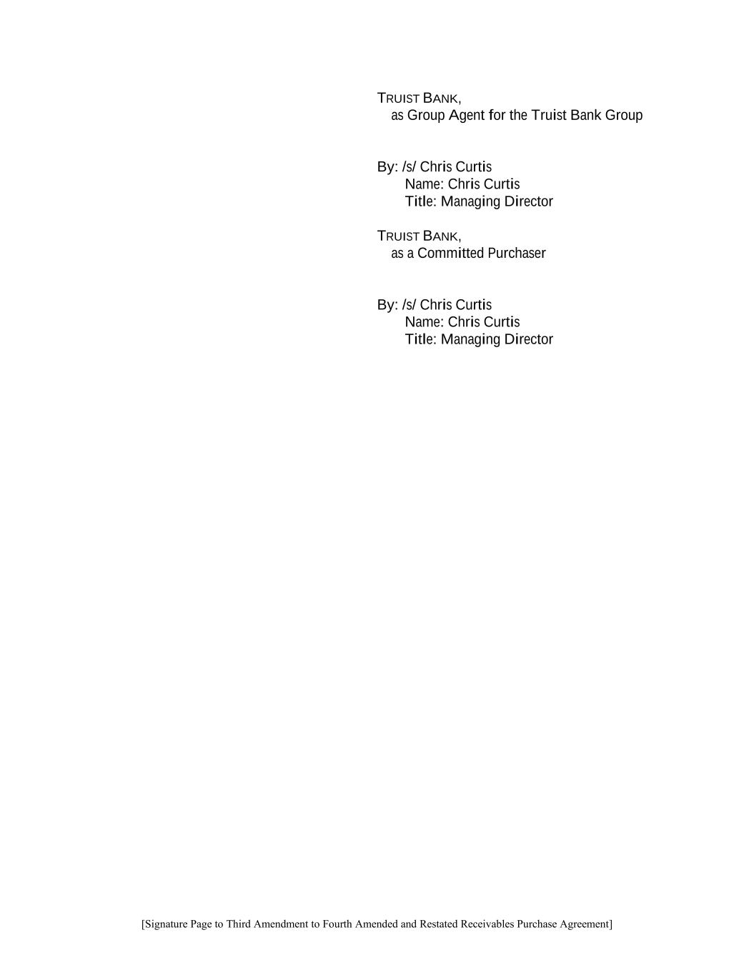 [Signature Page to Third Amendment to Fourth Amended and Restated Receivables Purchase Agreement] TRUIST BANK, as Group Agent for the Truist Bank Group By: /s/ Chris Curtis Name: Chris Curtis Title: Managing Director TRUIST BANK, as a Committed Purchaser By: /s/ Chris Curtis Name: Chris Curtis Title: Managing Director
