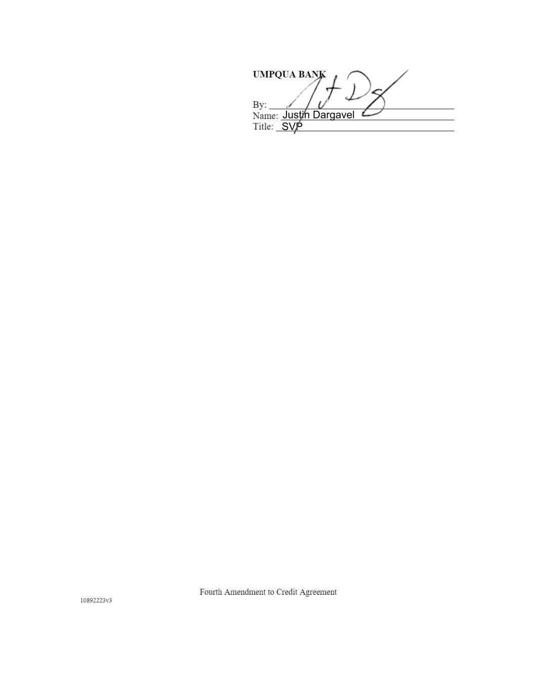 Fourth Amendment to Credit Agreement 10892223v3 CITY NATIONAL BANK By: Name: Stephanie Leimbach Title: Vice President