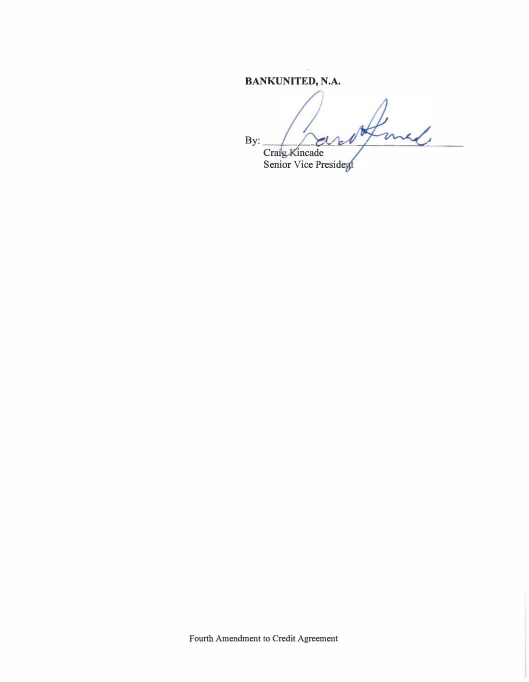 BANKUNITED, N.A. By:_�_,,---""'c..,,c_---""'--'---+--- �"""'----- Crai: incade Senior Vice Preside Fourth Amendment to Credit Agreement