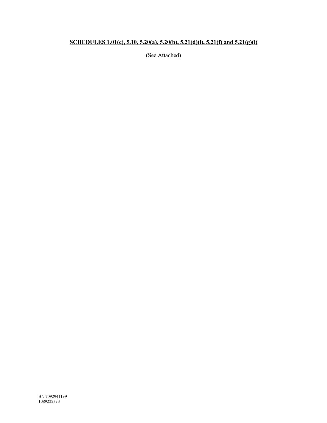 BN 70929411v9 10892223v3 SCHEDULES 1.01(c), 5.10, 5.20(a), 5.20(b), 5.21(d)(i), 5.21(f) and 5.21(g)(i) (See Attached)