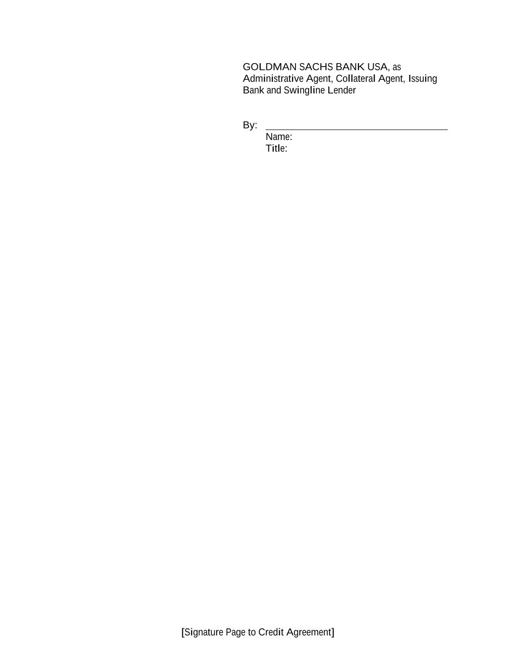 [Signature Page to Credit Agreement] GOLDMAN SACHS BANK USA, as Administrative Agent, Collateral Agent, Issuing Bank and Swingline Lender By: Name: Title: