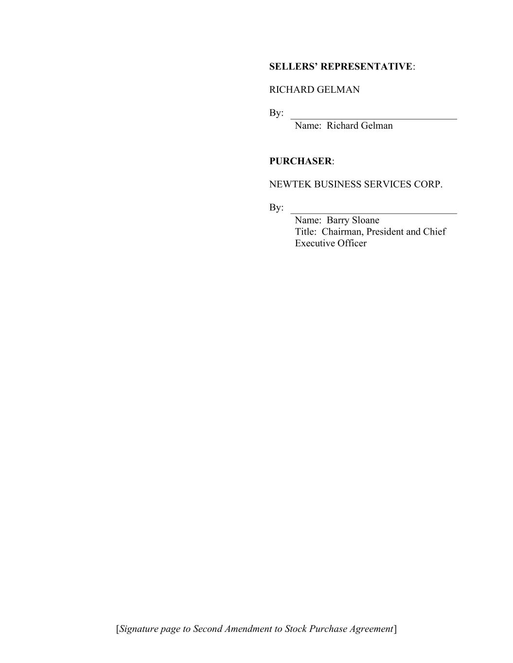 [Signature page to Second Amendment to Stock Purchase Agreement] SELLERS’ REPRESENTATIVE: RICHARD GELMAN By: Name: Richard Gelman PURCHASER: NEWTEK BUSINESS SERVICES CORP. By: Name: Barry Sloane Title: Chairman, President and Chief Executive Officer