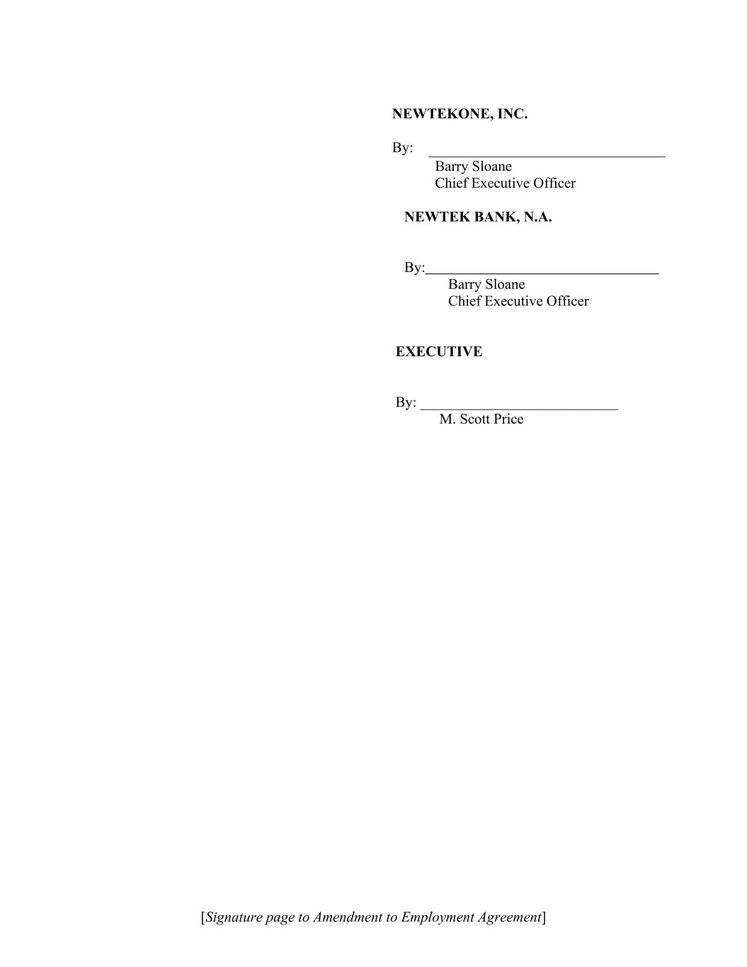 [Signature page to Amendment to Employment Agreement] NEWTEKONE, INC. By: Barry Sloane Chief Executive Officer NEWTEK BANK, N.A. By: Barry Sloane Chief Executive Officer EXECUTIVE By: ___________________________ M. Scott Price