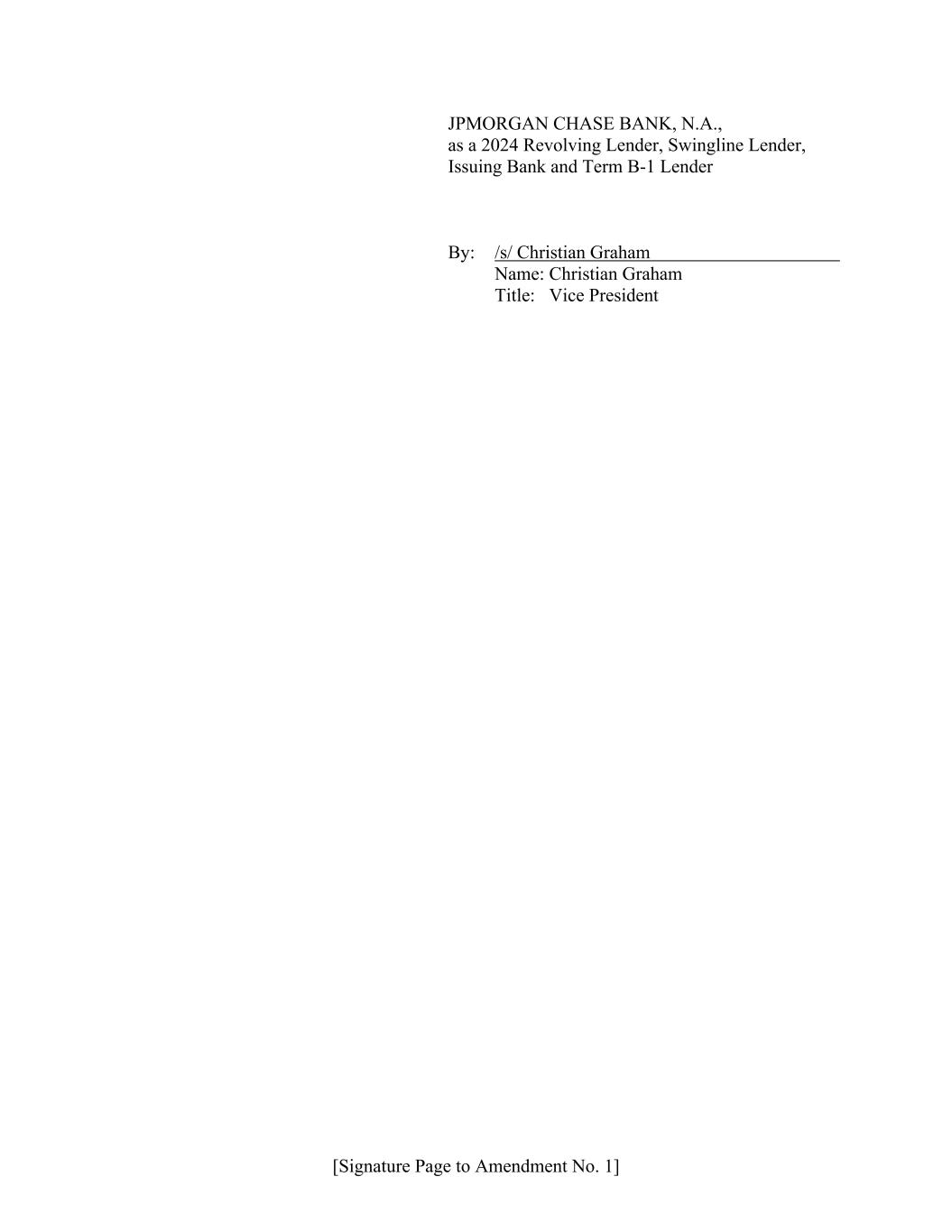 [Signature Page to Amendment No. 1] JPMORGAN CHASE BANK, N.A., as a 2024 Revolving Lender, Swingline Lender, Issuing Bank and Term B-1 Lender By: /s/ Christian Graham Name: Christian Graham Title: Vice President