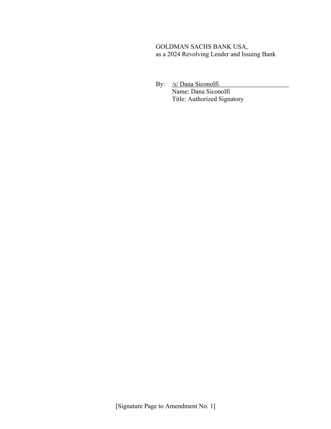 [Signature Page to Amendment No. 1] GOLDMAN SACHS BANK USA, as a 2024 Revolving Lender and Issuing Bank By: /s/ Dana Siconolfi Name: Dana Siconolfi Title: Authorized Signatory