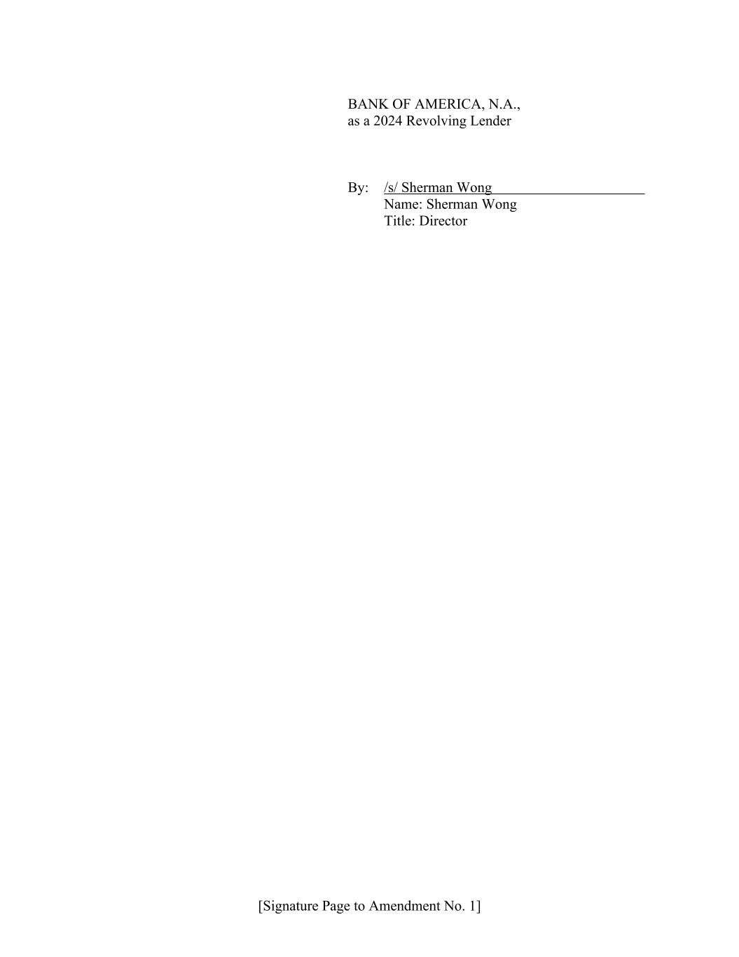 [Signature Page to Amendment No. 1] BANK OF AMERICA, N.A., as a 2024 Revolving Lender By: /s/ Sherman Wong Name: Sherman Wong Title: Director