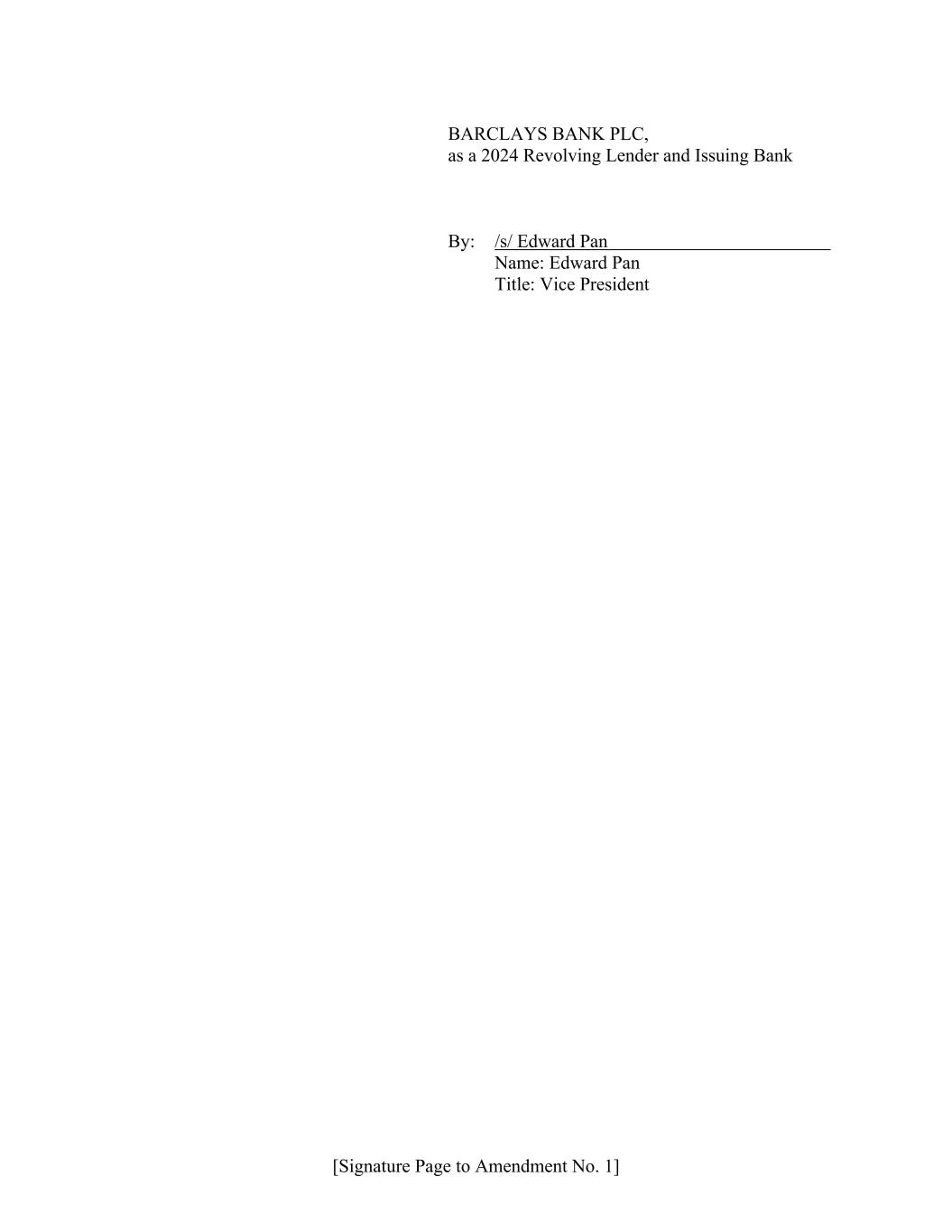 [Signature Page to Amendment No. 1] BARCLAYS BANK PLC, as a 2024 Revolving Lender and Issuing Bank By: /s/ Edward Pan Name: Edward Pan Title: Vice President
