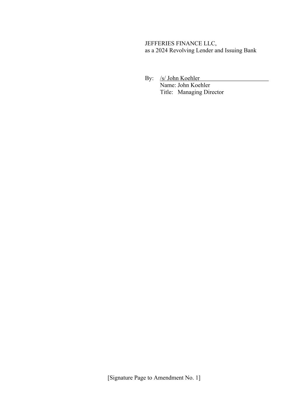[Signature Page to Amendment No. 1] JEFFERIES FINANCE LLC, as a 2024 Revolving Lender and Issuing Bank By: /s/ John Koehler Name: John Koehler Title: Managing Director