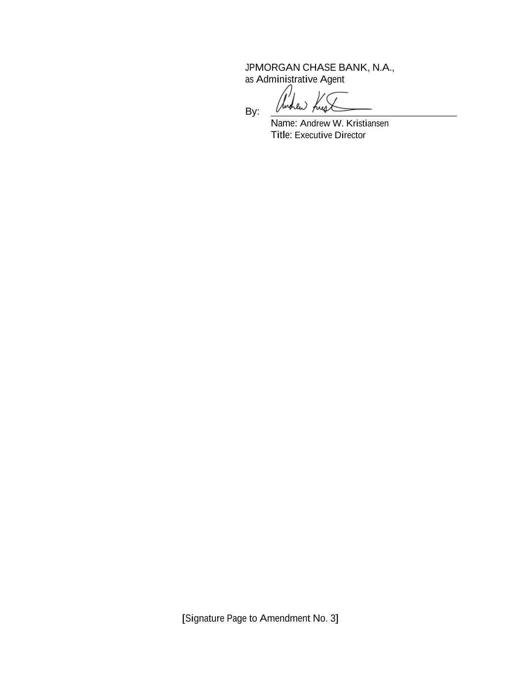 [Signature Page to Amendment No. 3] JPMORGAN CHASE BANK, N.A., as Administrative Agent By: Name: Andrew W. Kristiansen Title: Executive Director