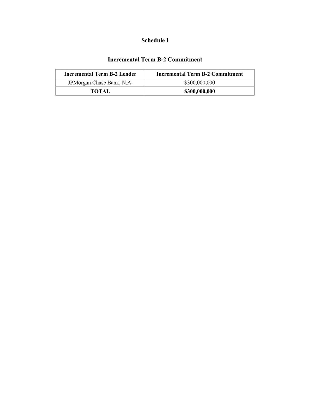 Schedule I Incremental Term B-2 Commitment Incremental Term B-2 Lender Incremental Term B-2 Commitment JPMorgan Chase Bank, N.A. $300,000,000 TOTAL $300,000,000