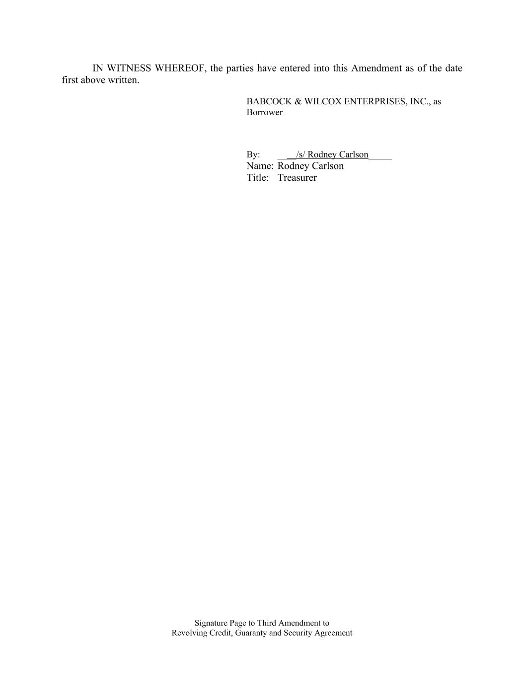 Signature Page to Third Amendment to Revolving Credit, Guaranty and Security Agreement IN WITNESS WHEREOF, the parties have entered into this Amendment as of the date first above written. BABCOCK & WILCOX ENTERPRISES, INC., as Borrower By: ____/s/ Rodney Carlson_____ Name: Rodney Carlson Title: Treasurer