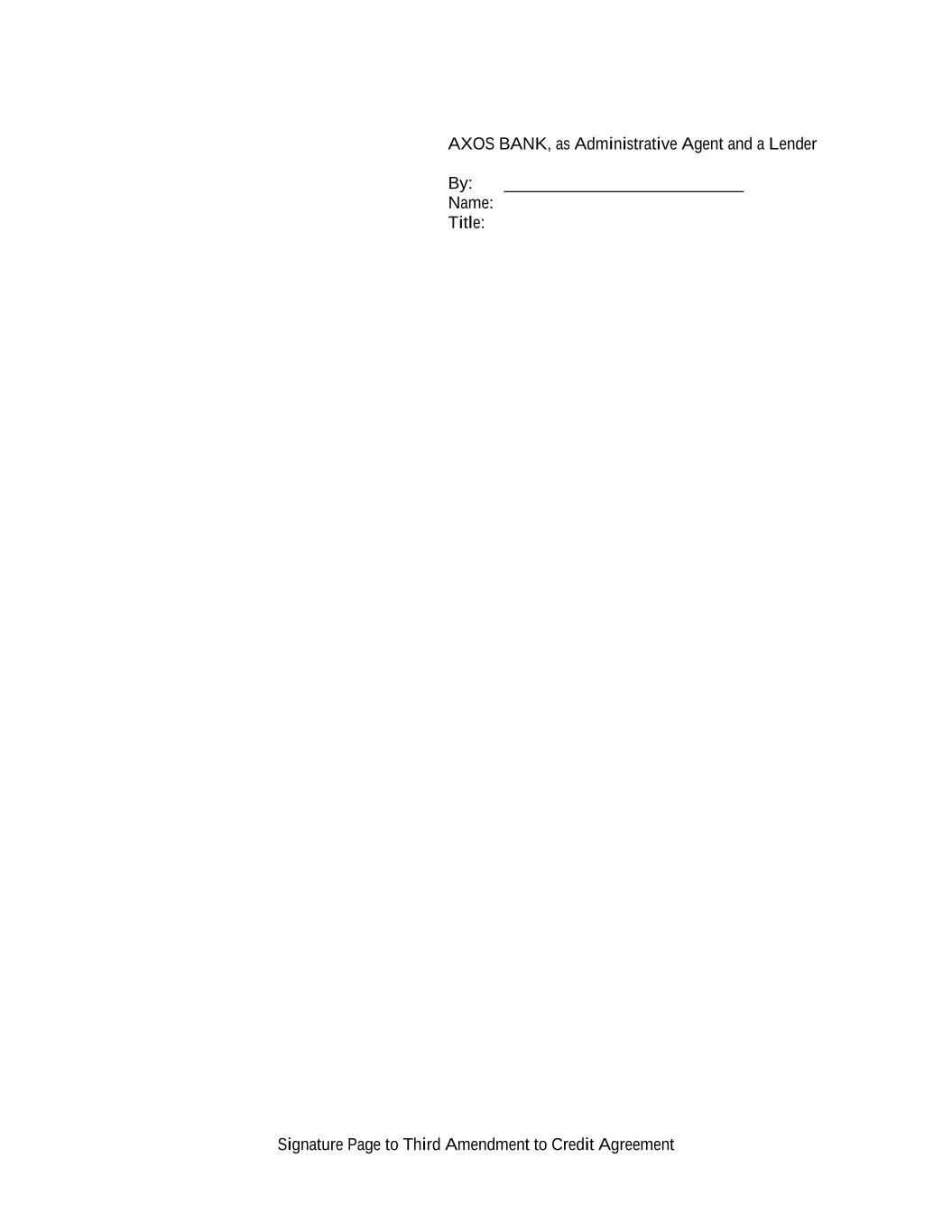Signature Page to Third Amendment to Credit Agreement AXOS BANK, as Administrative Agent and a Lender By: ____________________________ Name: Title: