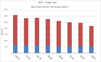 | Zedge Marketplace: | $ | 1,264 | $ | 1,197 | 5.6 | % | $ | 2,240 | $ | 4,532 | -50.6 | % | ||||||||||||